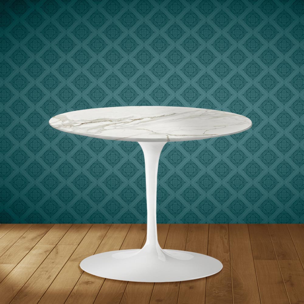 طاولة قهوة بسطح دائري من سيراميك ديكتون المصقول، بتأثير رخام كالاكاتا لامع ، وقاعدة من الألومنيوم المصقول ، مصنوعة بالكامل في إيطاليا . بفضل تشطيباتها البسيطة والأنيقة ، تُناسب هذه القطعة غرف المعيشة بمختلف أنماطها. ما يُميزها عن غيرها هو سطحها المصنوع من سيراميك ديكتون المصقول، الذي يُضفي لمسة جمالية رائعة على المكان ويجعله أكثر جاذبية . كما أن مزيج سيراميك ديكتون والألومنيوم المصقول يُشكل توليفة مثالية تجعل هذه الطاولة مناسبة لجميع المناسبات .