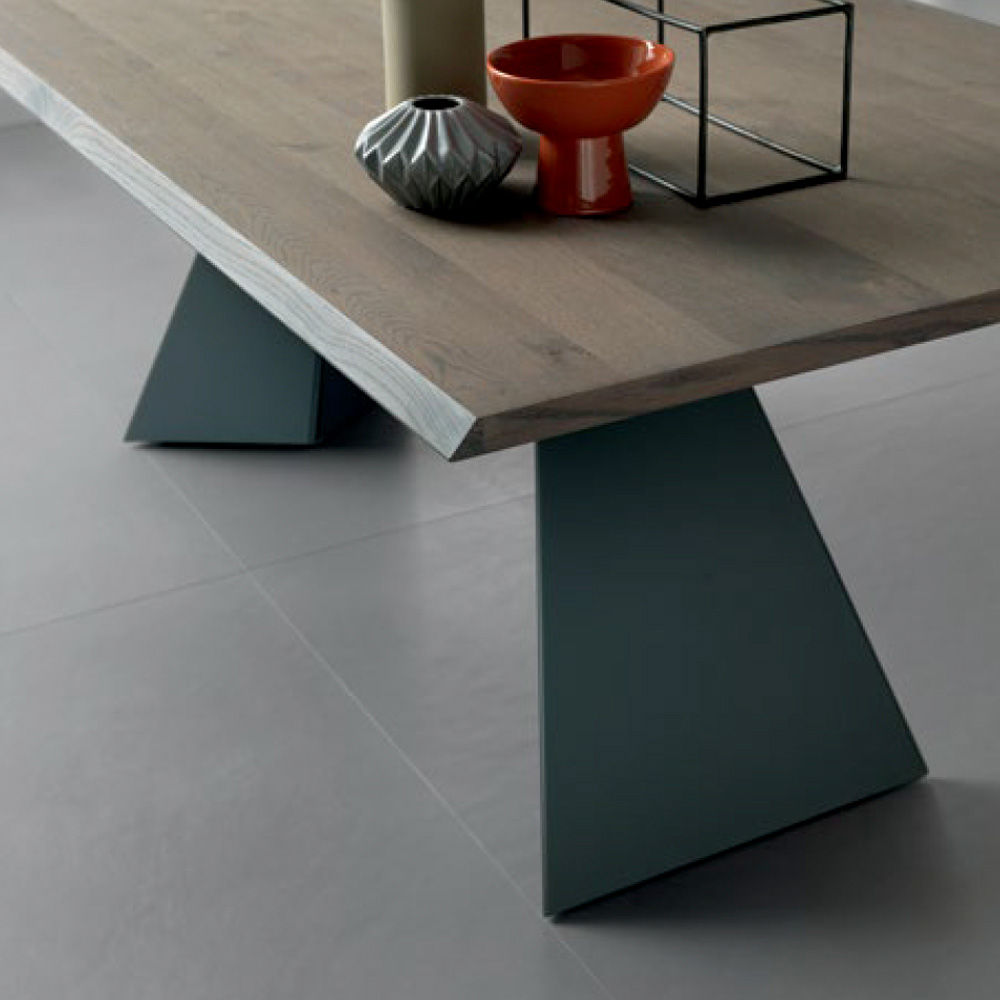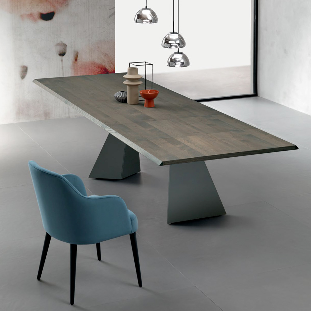 قاعدة معدنية منحوتة بلون الأنثراسيت ، مكونة من دعامتين هندسيتين، تُقدم تصميمًا جريئًا يضمن الثبات والطابع المميز . يُضفي مزيج دفء الخشب وصلابة المعدن توازنًا جماليًا لا تشوبه شائبة، مثاليًا لمن يبحثون عن قطعة فنية عملية في آن واحد.
