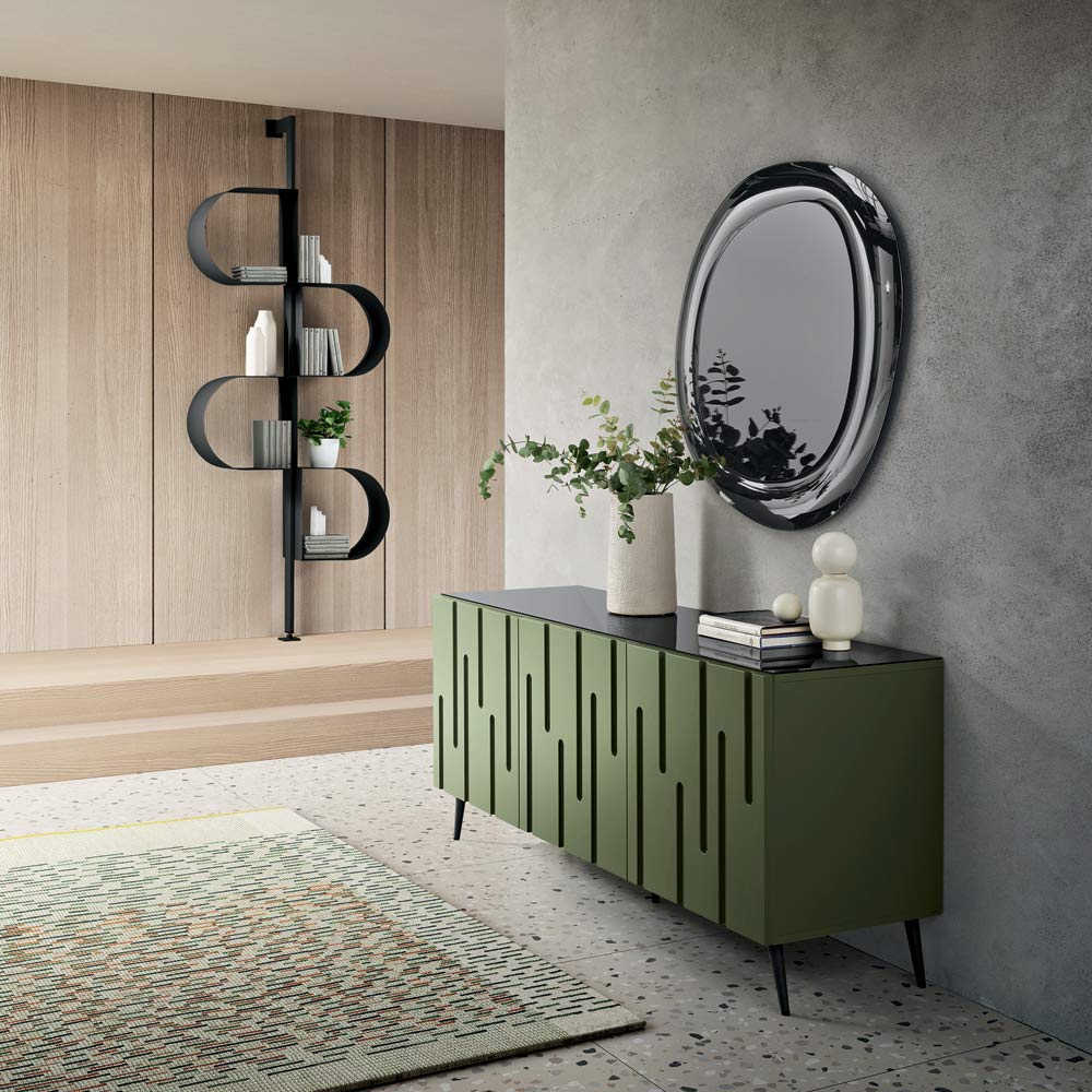 خزانة جانبية أنيقة من تصميم إيطالي ، مثالية لتأثيث غرفة المعيشة أو غرفة الطعام بأسلوب عصري. يتميز تصميمها المعاصر بطابعه النحتي القوي، مما يحول وحدة التخزين إلى عنصر ديكوري لافت للنظر.