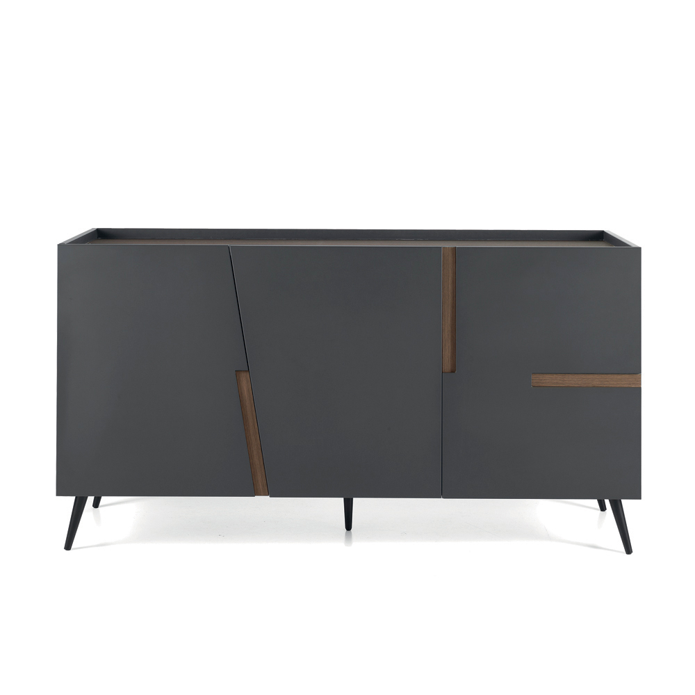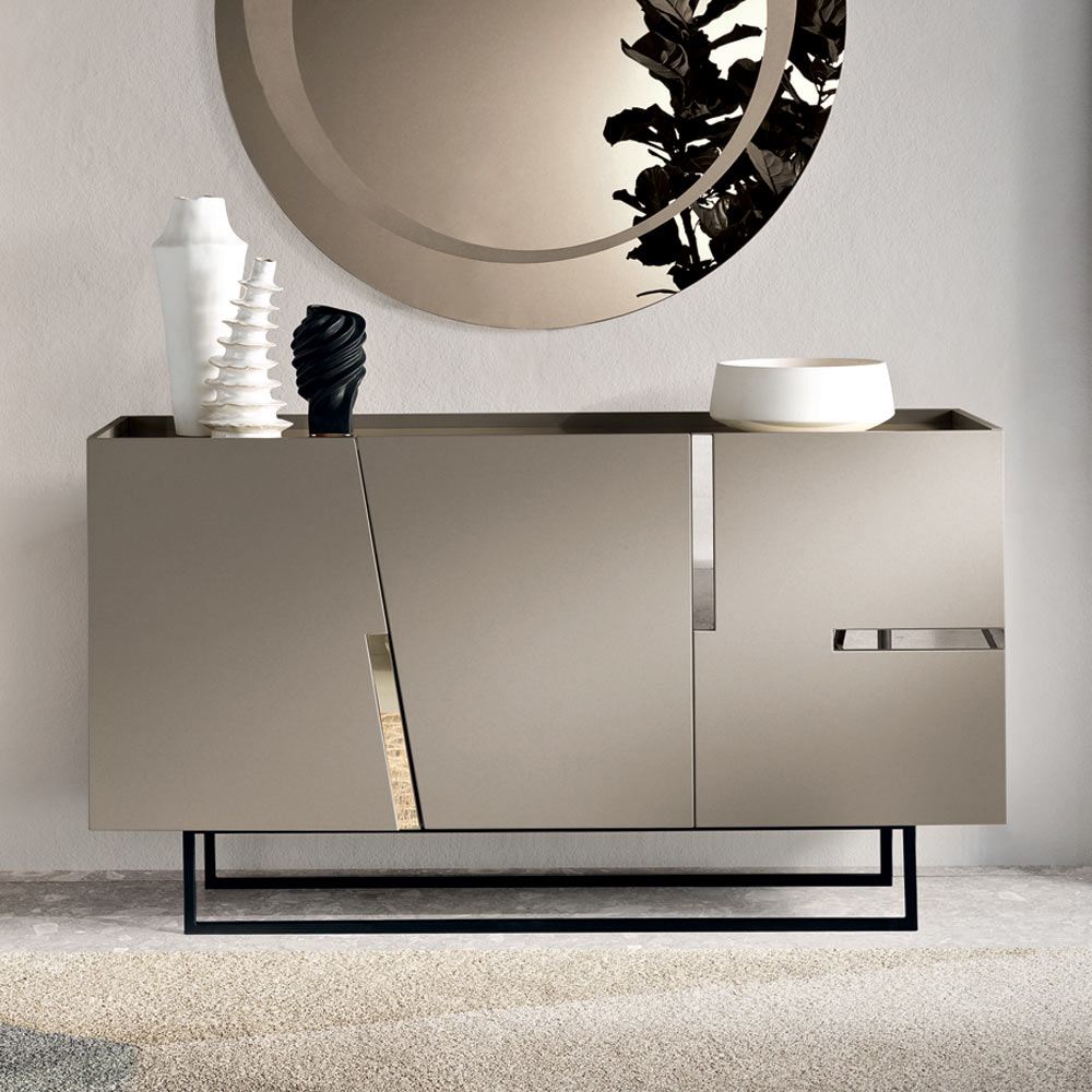 تُضفي القاعدة المعدنية المطلية ، المتوفرة بتشكيلات متنوعة، لمسةً انسيابية على التصميم، مانحةً إياه خفة بصرية ولمسة عصرية. وبفضل توازنها بين الجمال والوظائف العملية، تُعدّ هذه الخزانة الجانبية حلاً مثالياً لتنظيم المساحات بأناقة.