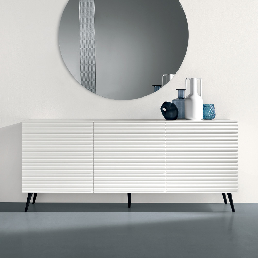 خزانة جانبية أنيقة من تصميم إيطالي ، مثالية لتأثيث غرفة المعيشة أو غرفة الطعام بأسلوب عصري. يتميز تصميمها المعاصر بجماله النظيف والراقي، مما يضفي لمسة جمالية مميزة على أي جدار.