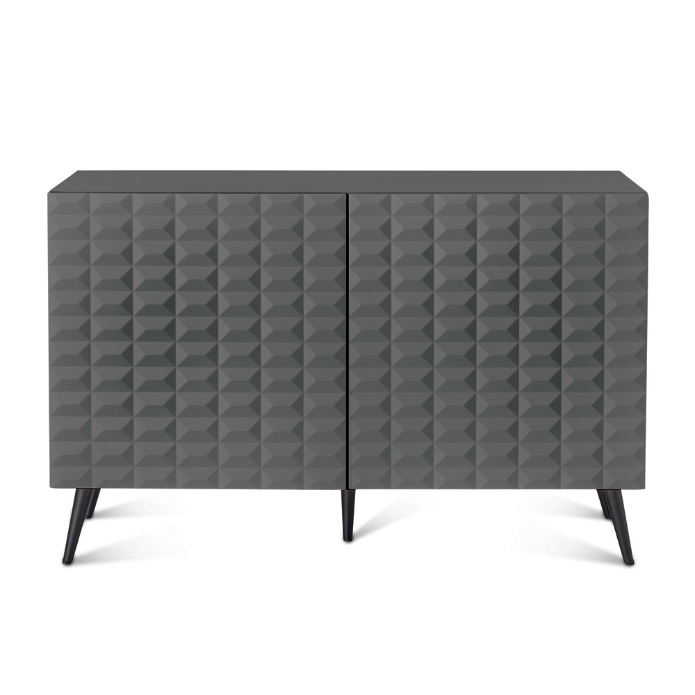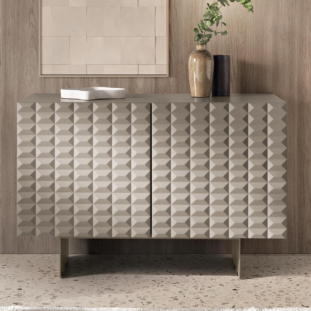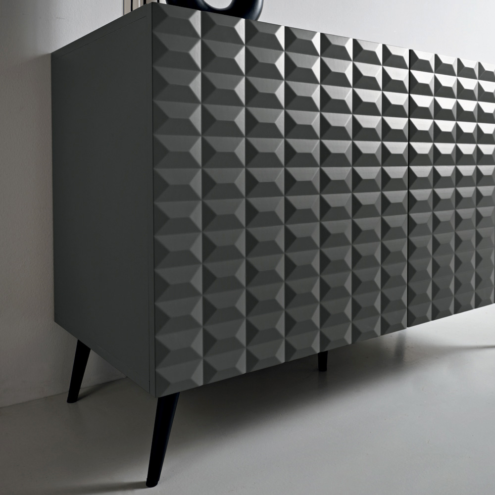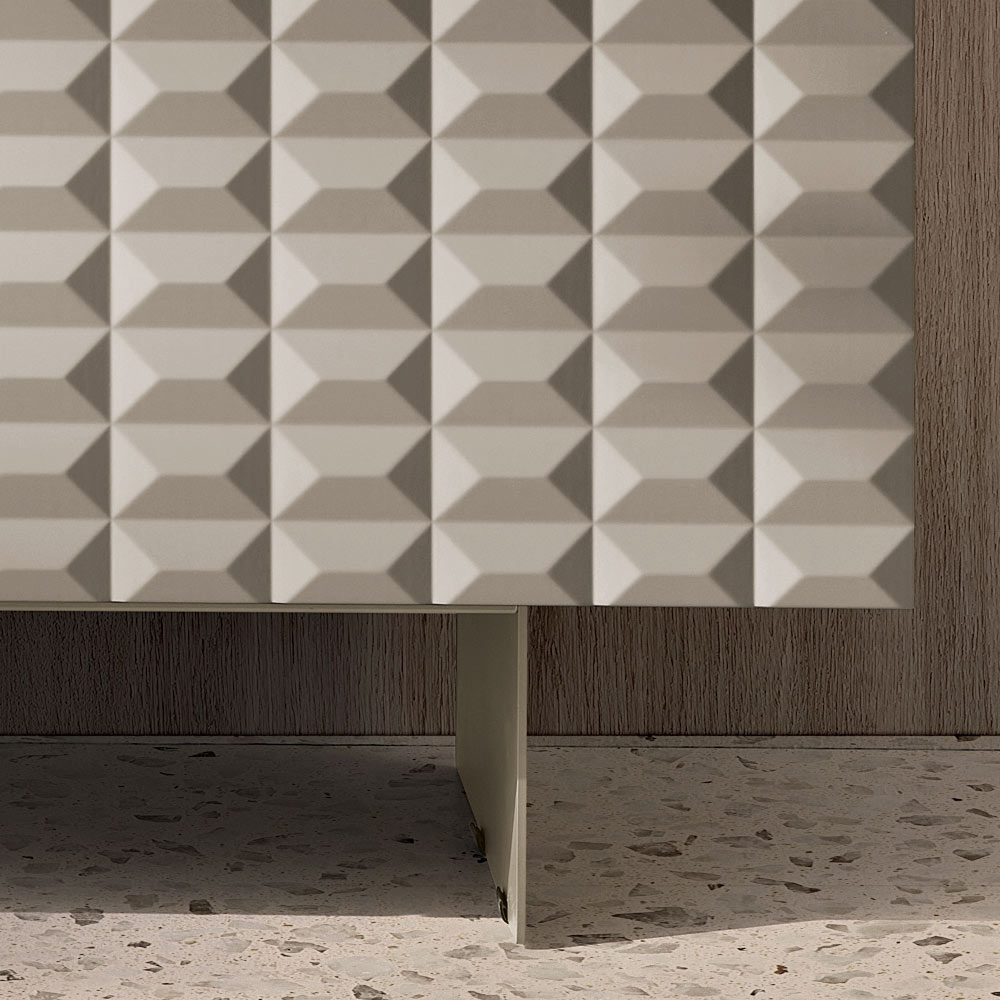 خزانة جانبية مصممة في إيطاليا بأبواب ثلاثية الأبعاد على شكل ماسة وقاعدة معدنية