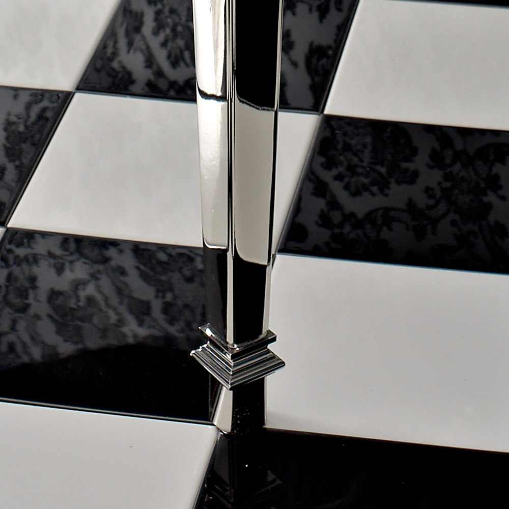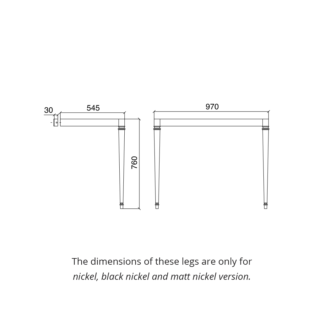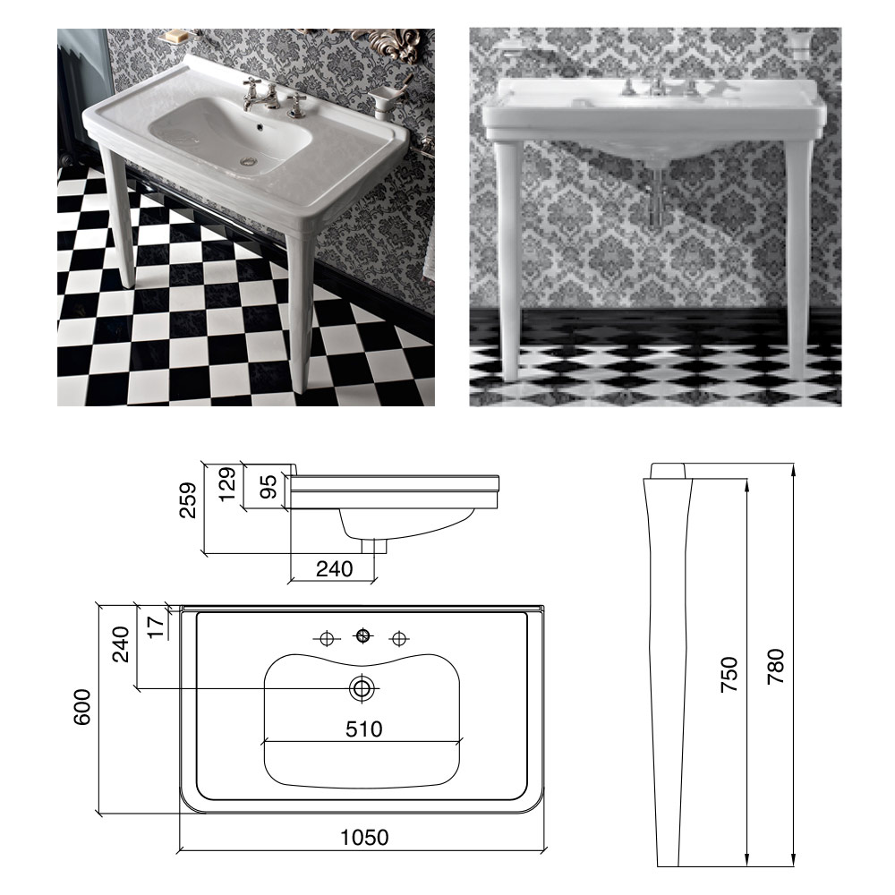 | الجزء العلوي: الطول 105 × العمق 60 × الارتفاع 25 سم، القاعدة المعدنية: الطول 97 × العمق 54.5 × الارتفاع 76 سم، الأرجل الخزفية: الارتفاع 78 سم | مقاسات |
