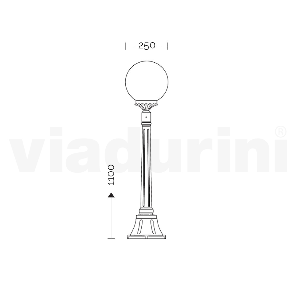مصباح حديقة مصنوع من هيكل من الألومنيوم المصبوب وموزع كروي من الأكريليك الأوبال ، صنع بالكامل في إيطاليا.