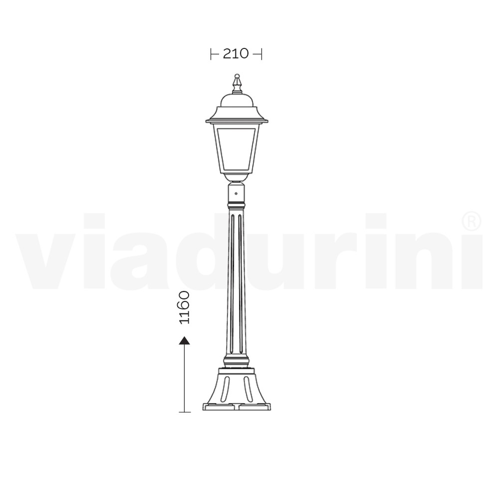 مصباح حديقة مصنوع من هيكل من الألومنيوم المصبوب بلمسة نهائية من أنثراسايت وموزع زجاجي مصقول بالرمل ، صنع بالكامل في إيطاليا.