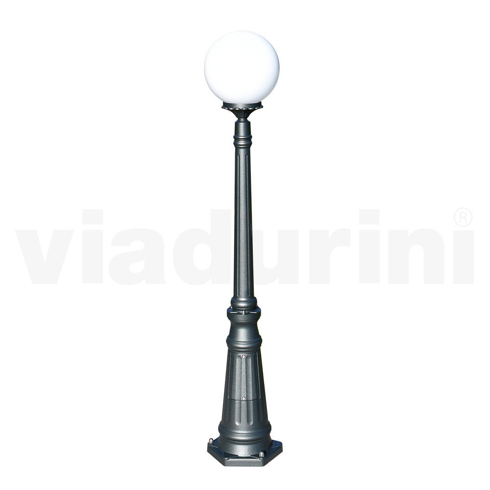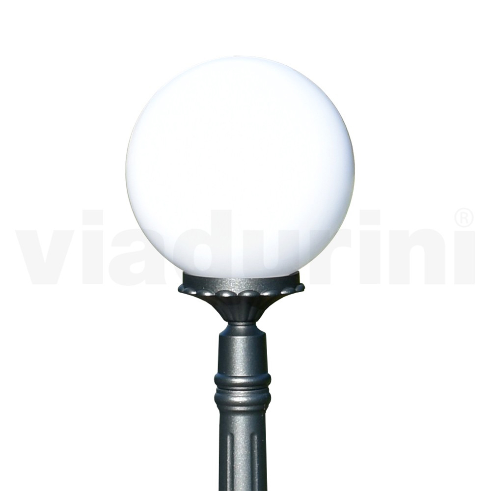 مصباح حديقة مصنوع من هيكل من الألومنيوم المصبوب بلمسة نهائية من أنثراسايت وموزع كروي من الأكريليك الأوبال ، صنع بالكامل في إيطاليا.