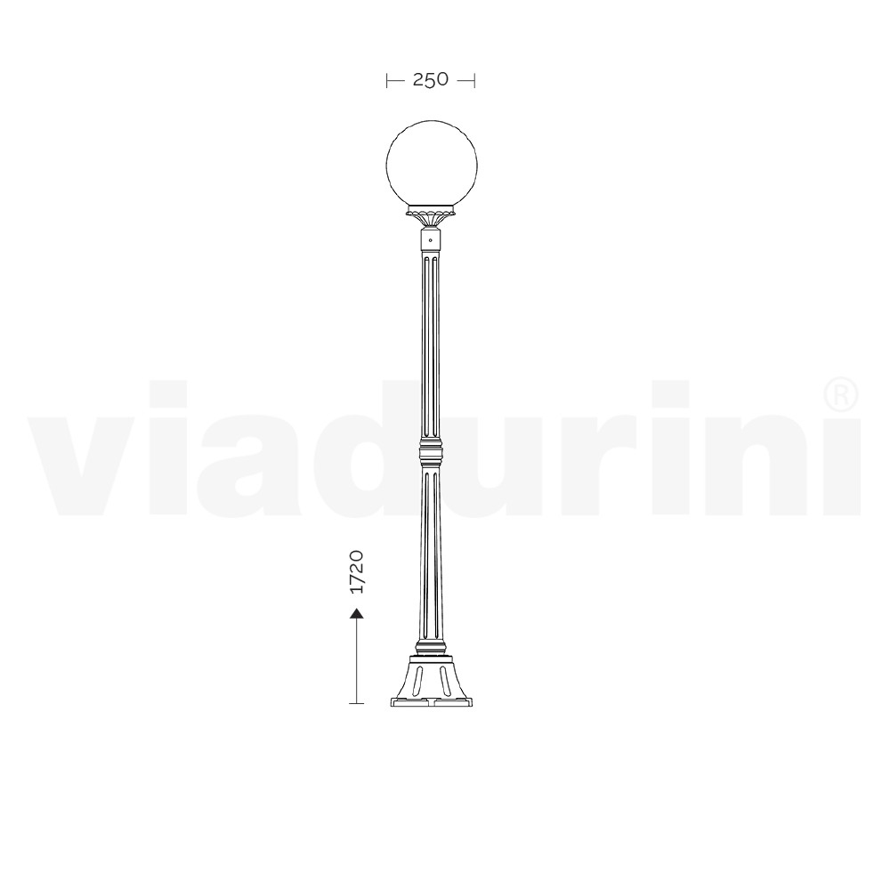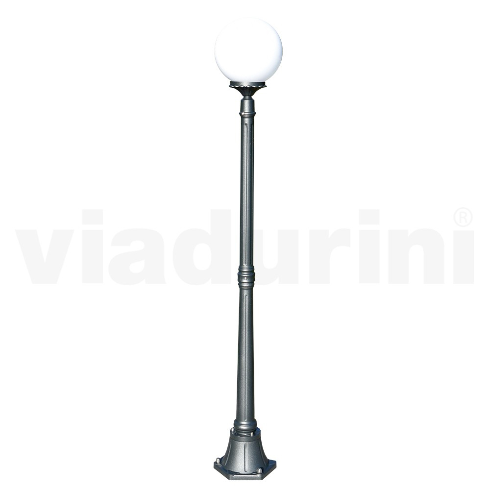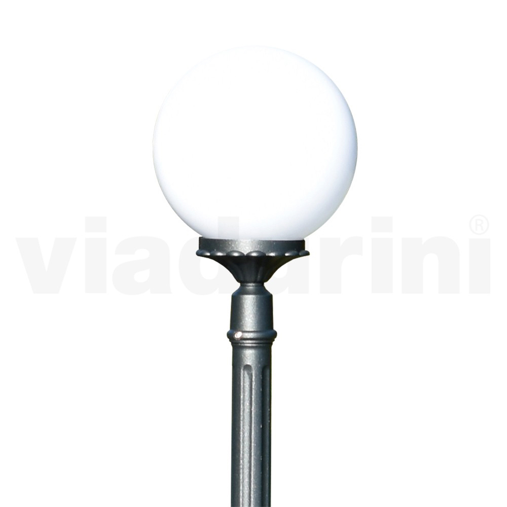 مصباح حديقة مصنوع من هيكل من الألومنيوم المصبوب بلمسة نهائية من أنثراسايت وموزع كروي من الأكريليك الأوبال ، صنع بالكامل في إيطاليا.