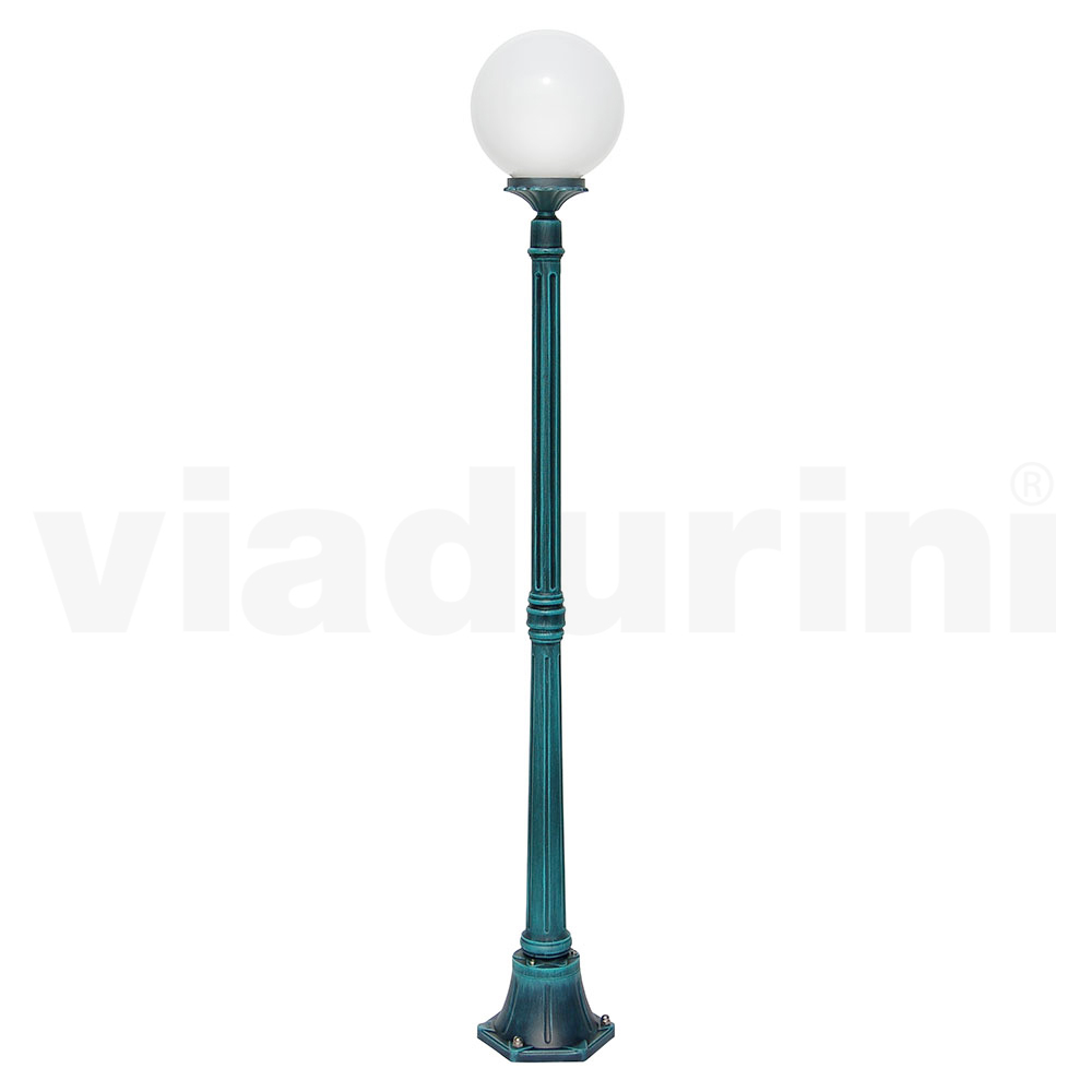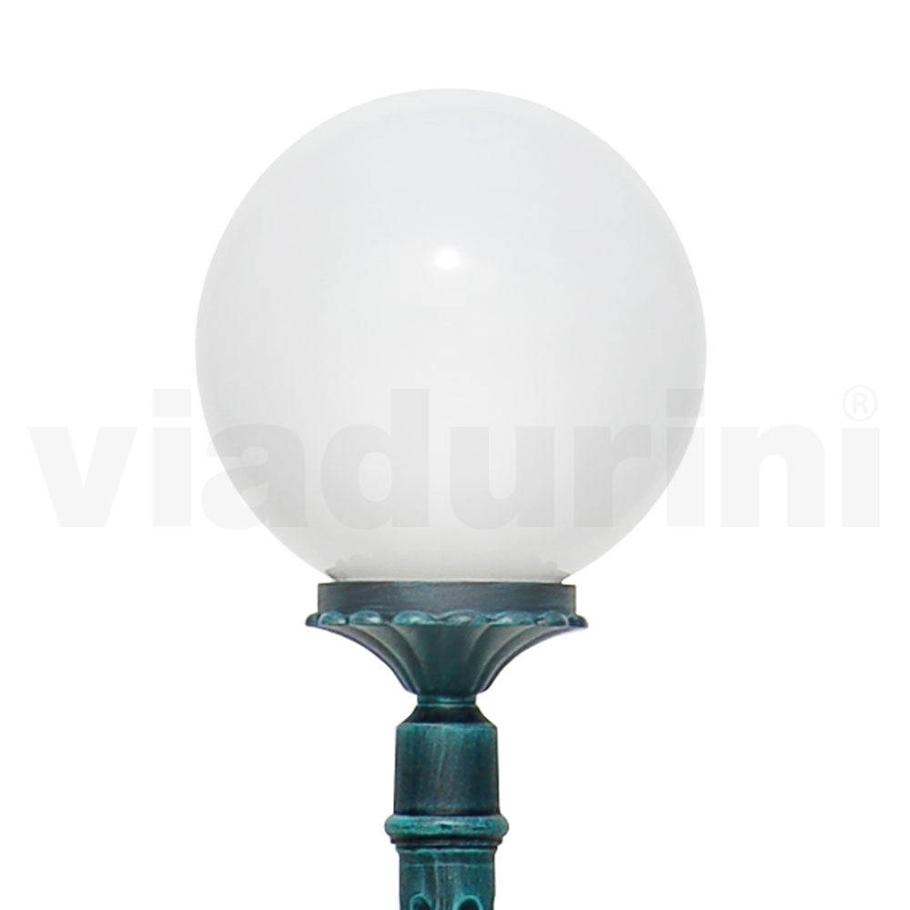 مصباح حديقة مصنوع من هيكل من الألومنيوم المصبوب وموزع كروي من الأكريليك الأوبال ، صنع بالكامل في إيطاليا.