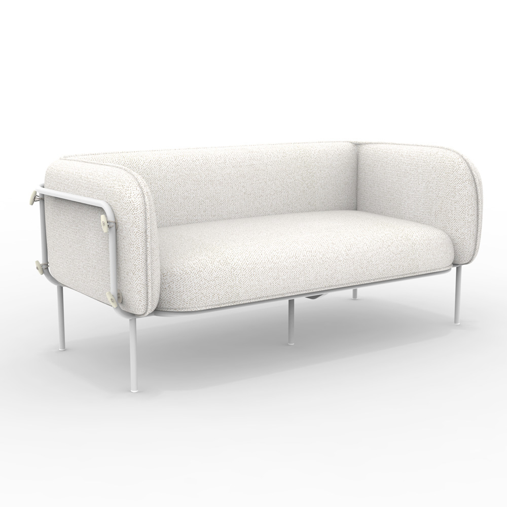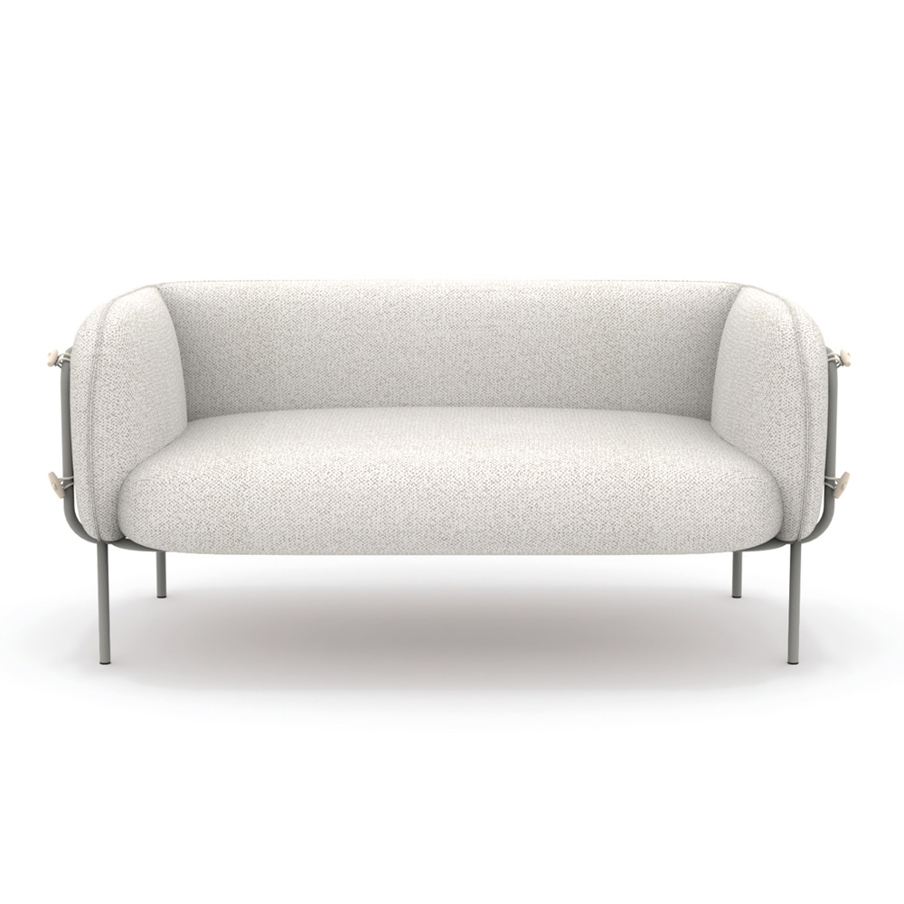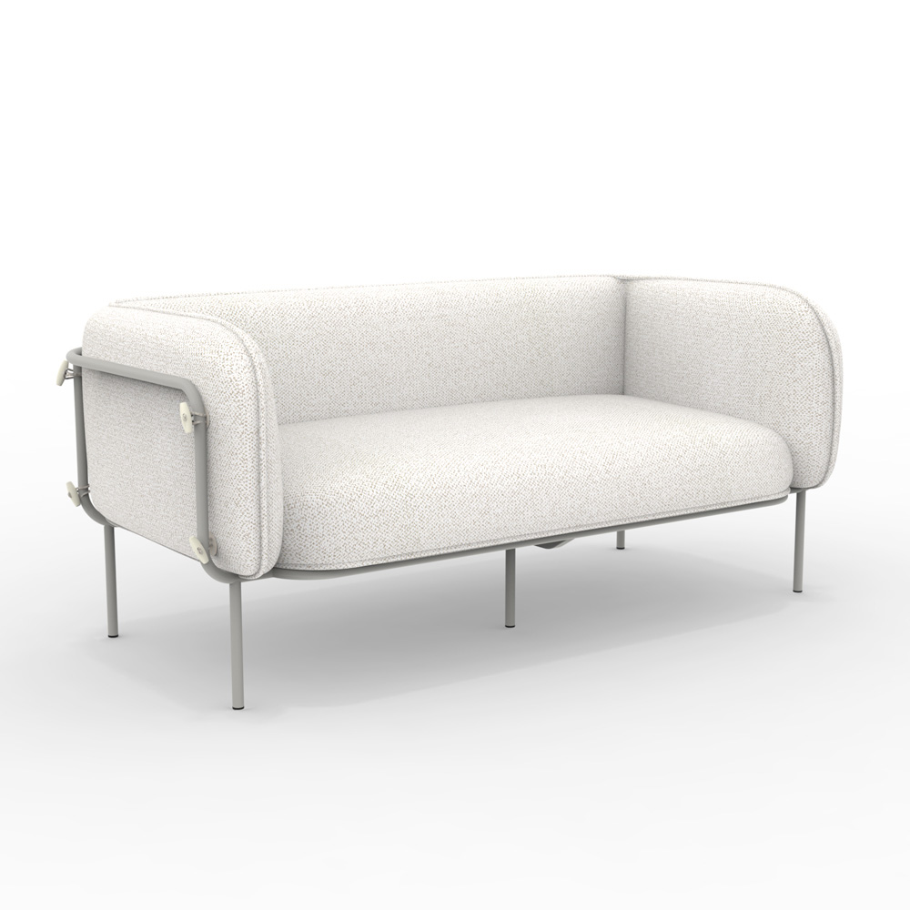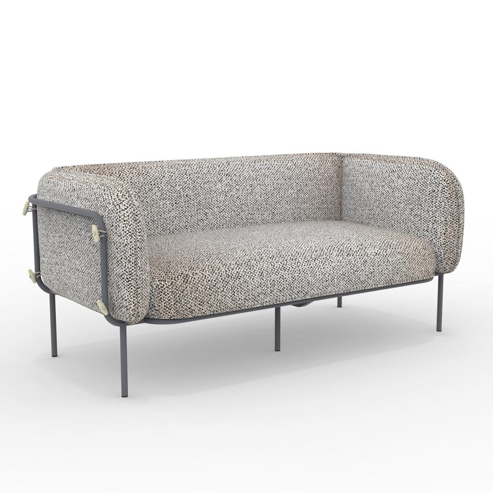 أريكةخارجية ذات مقعدين مصنوعة من هيكل من الحديد المجلفن المطلي بالمسحوقومقعد من القماش ، مصنوعة بالكامل في إيطاليا.