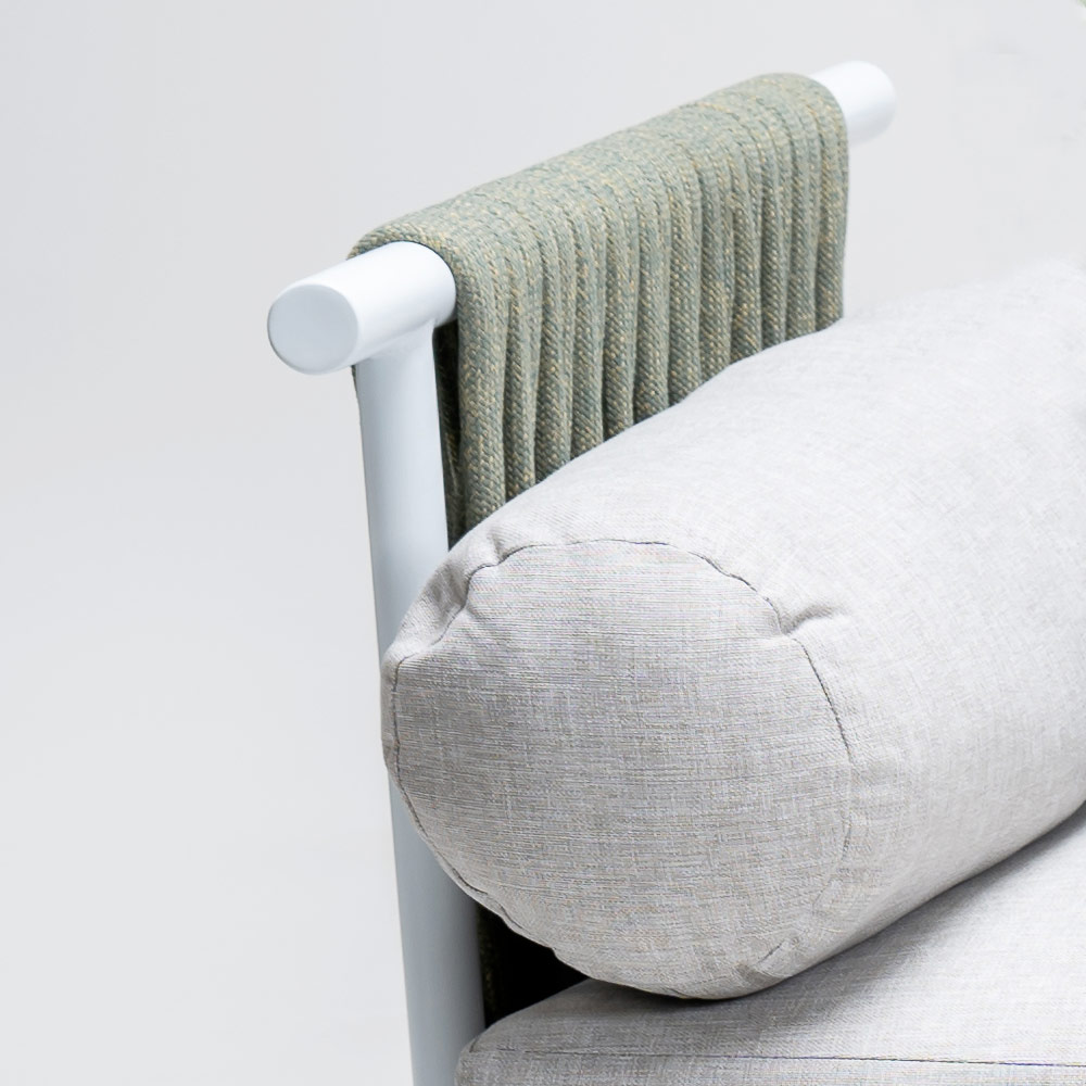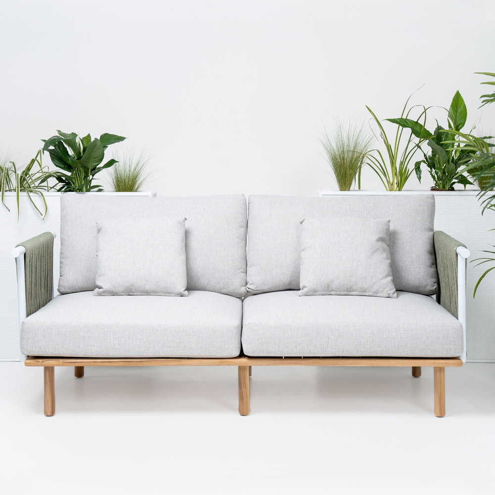 أريكة حديقة من خشب الساج، ومساند ظهر من الألومنيوم ونسيج من الأوليفين/حبل من البولي بروبيلين ووسائد