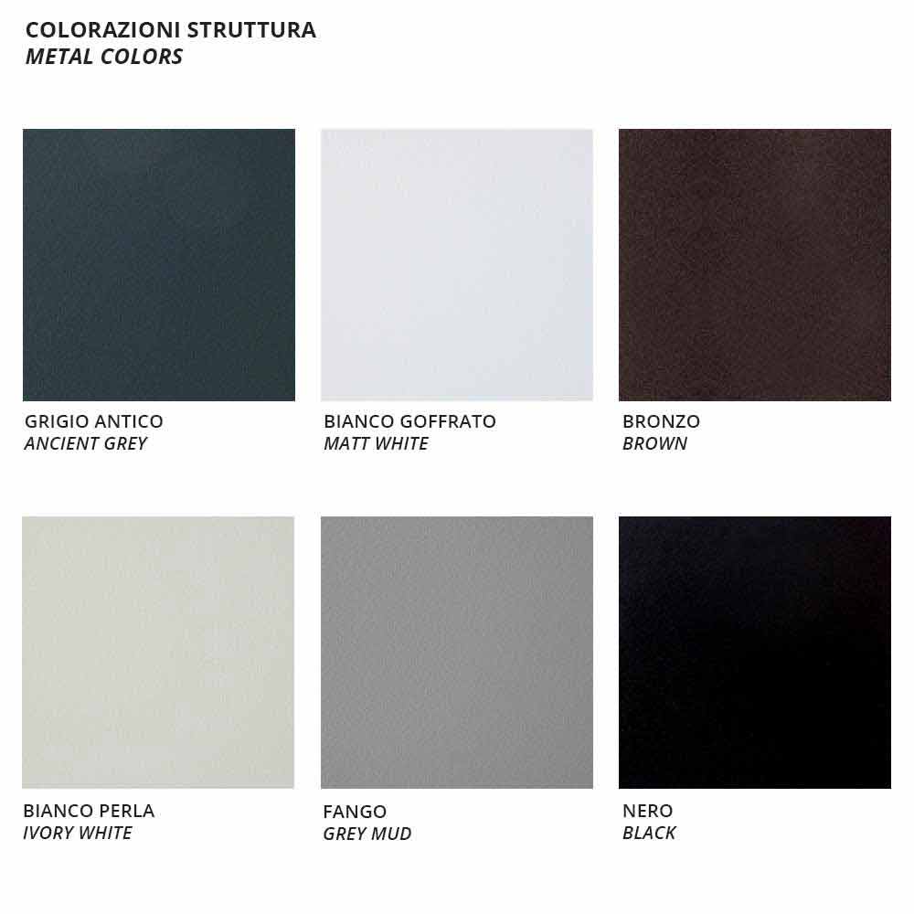 هيكله مصنوع من حديد مجلفن مطلي بمسحوق، ومطلي بمساحيق حرارية صلبة، وهو مثالي لتصنيع منتجات خارجية تحافظ على خصائصها الجمالية في جميع الظروف المناخية. أما السقف والمقعد ومسند الظهر، فهما مصنوعان من قماش "تكسبلاست" ، وهو نسيج مصنوع من ألياف البوليستر مغطى بغلاف من البولي فينيل كلوريد (PVC)، مما يسمح للمنتج بمقاومة العوامل الجوية والأشعة فوق البنفسجية. يمكن أيضًا تكديس الكرسي الطويل لتحقيق أفضل استفادة من المساحة عند الحاجة.