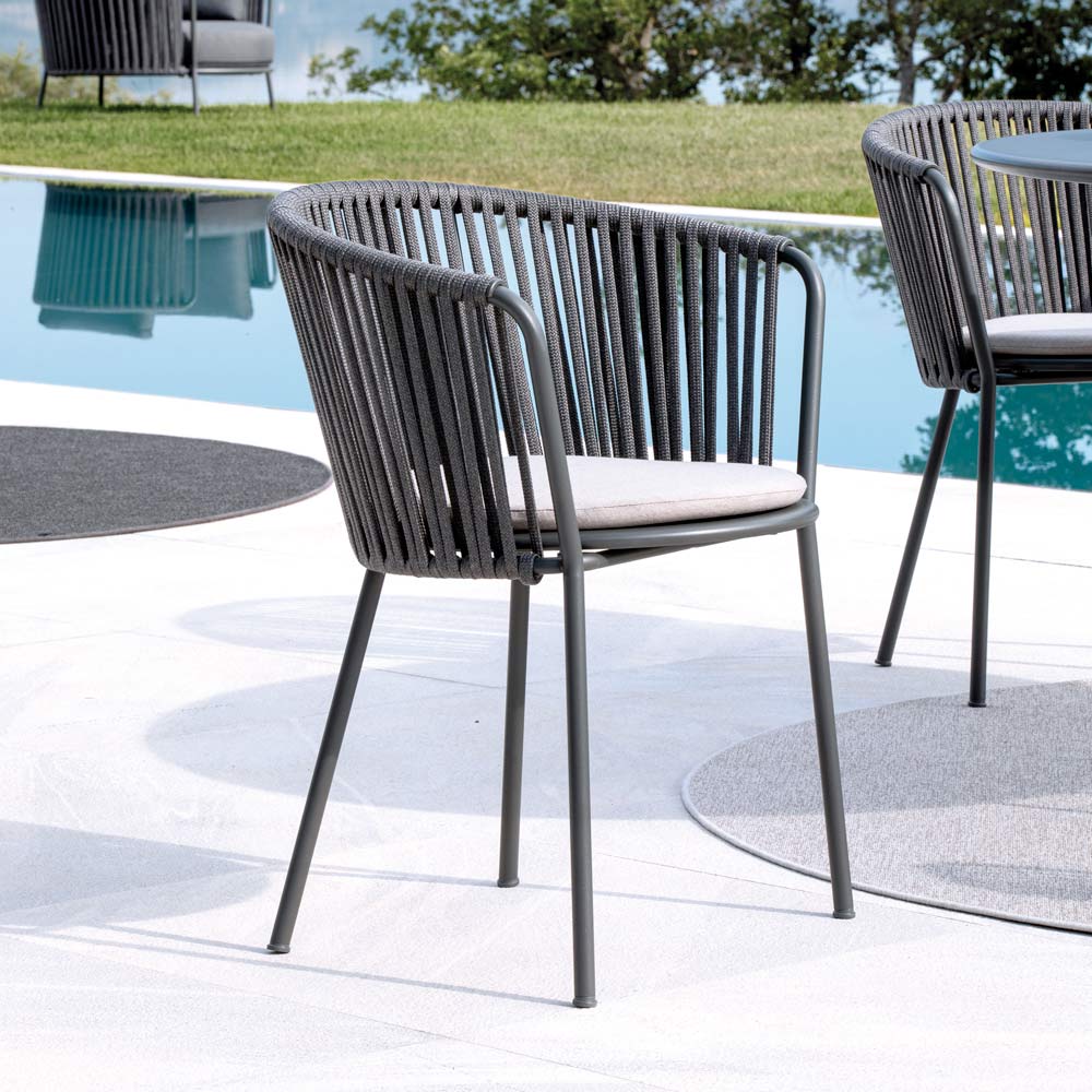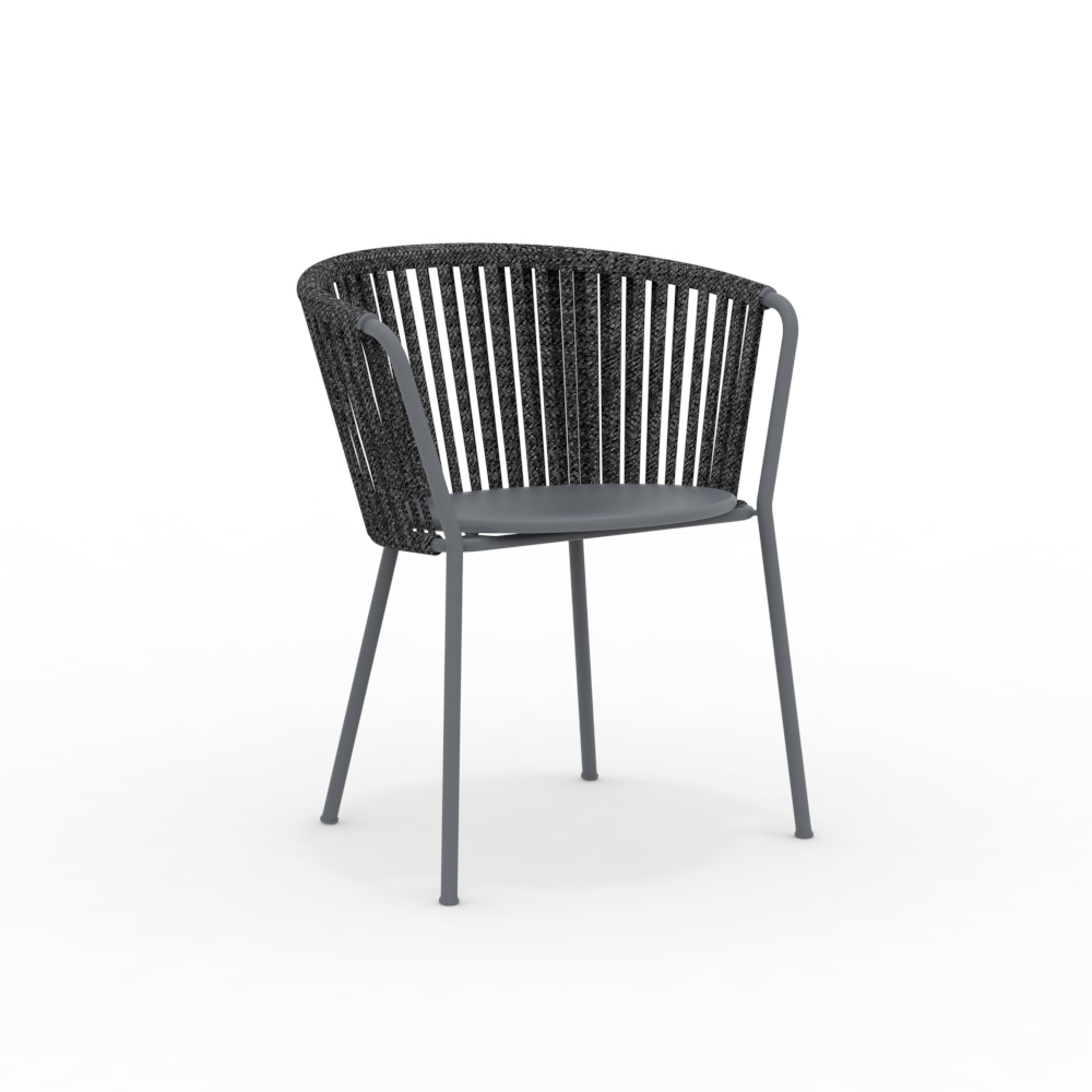 يضمن هيكل الفولاذ المقاوم للصدأ المتانة ومقاومة العوامل الجوية، بينما يُضفي نسيج الحبل لمسةً من الخفة والأناقة، مُحيطًا المقعد براحةٍ مُريحة. يضمن التصميم المريح والخطوط المُستديرة تجربة جلوسٍ مُمتعة ومريحة.