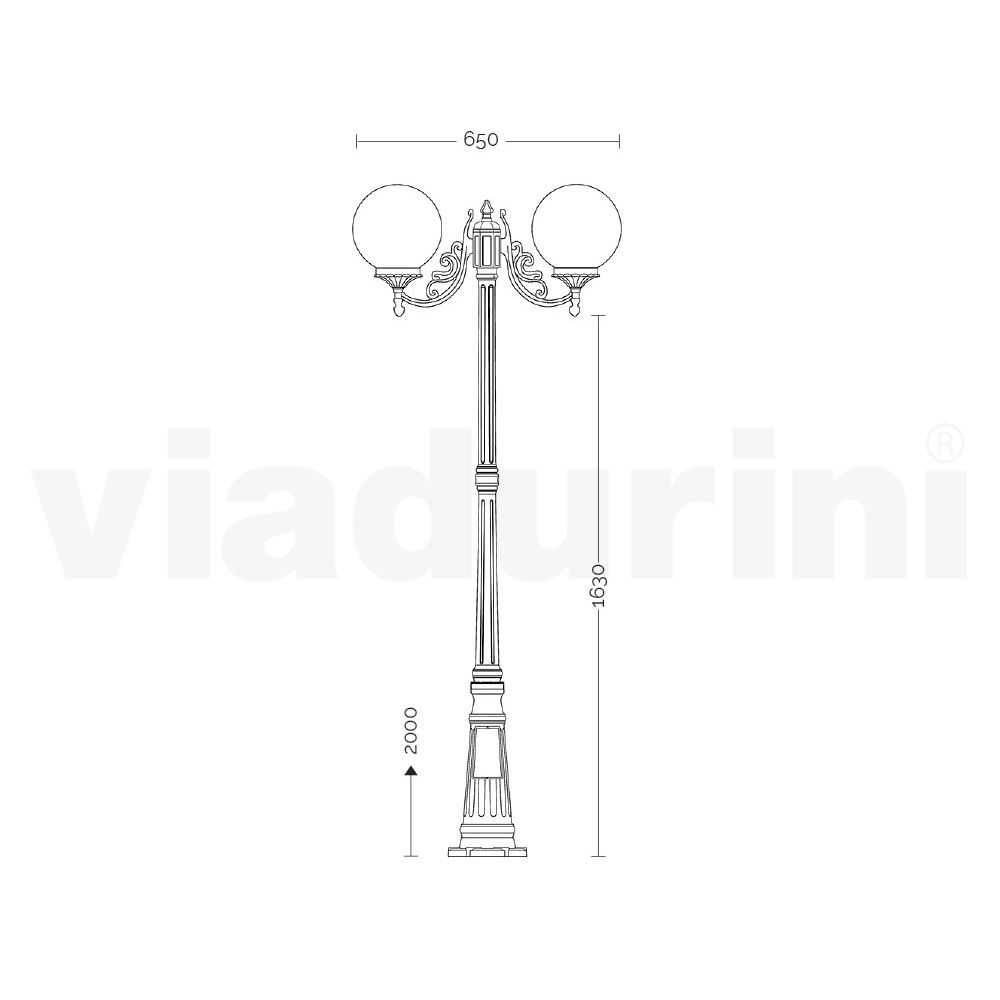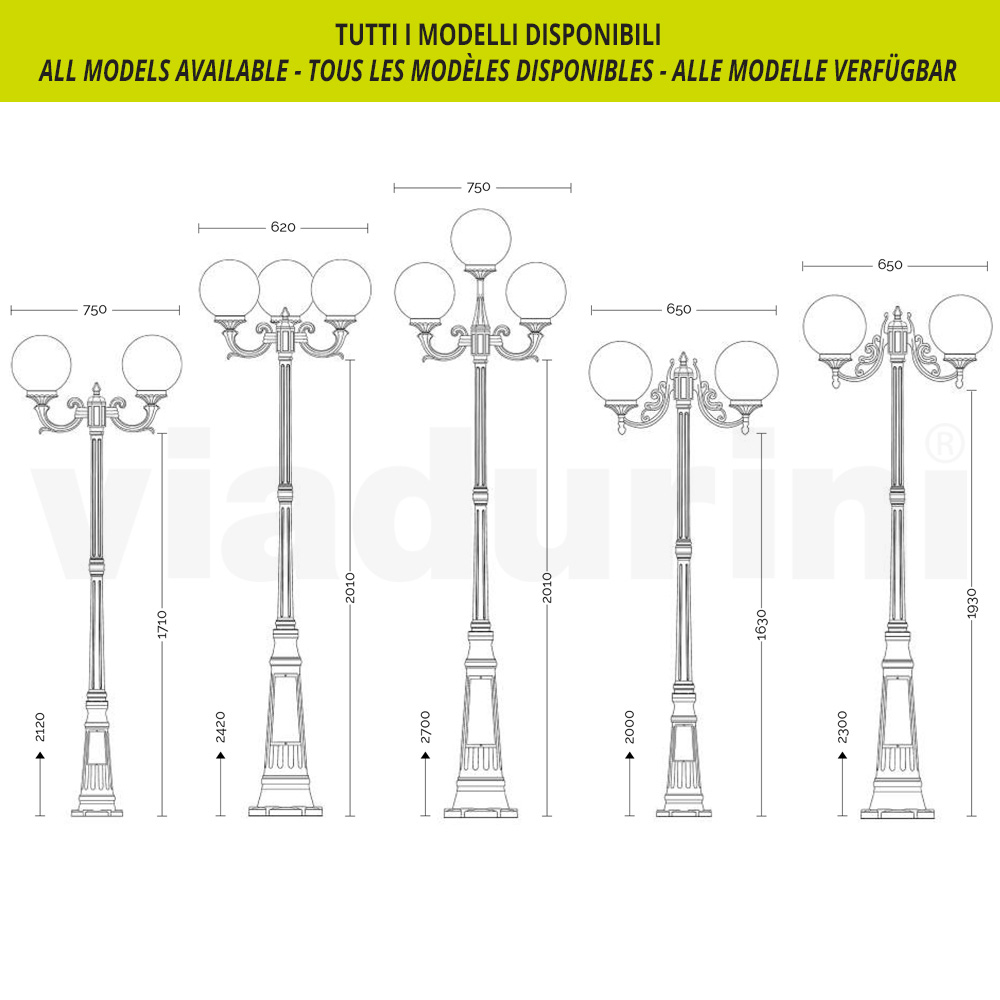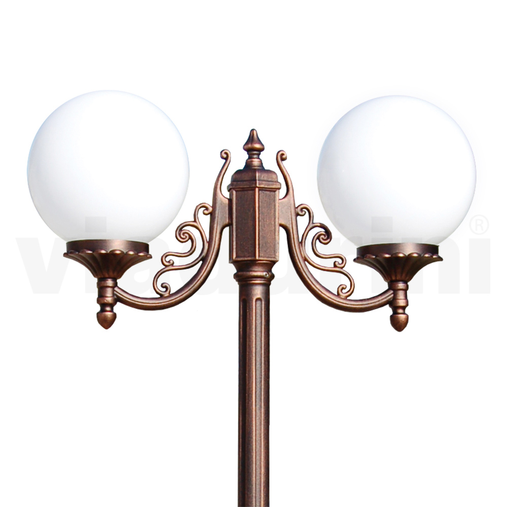 مصباح حديقة مصنوع من هيكل من الألومنيوم المصبوب وموزع كروي من الأكريليك الأوبال ، صنع بالكامل في إيطاليا.