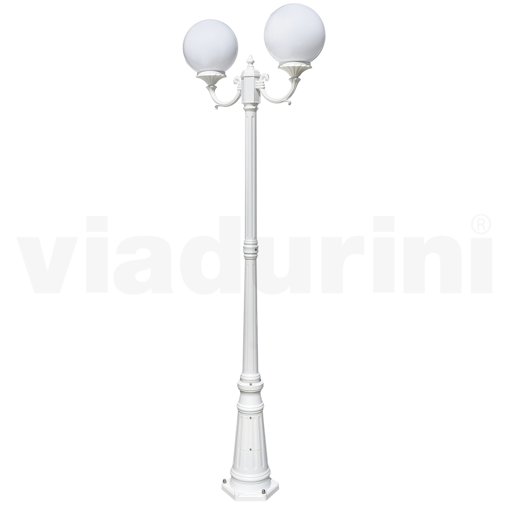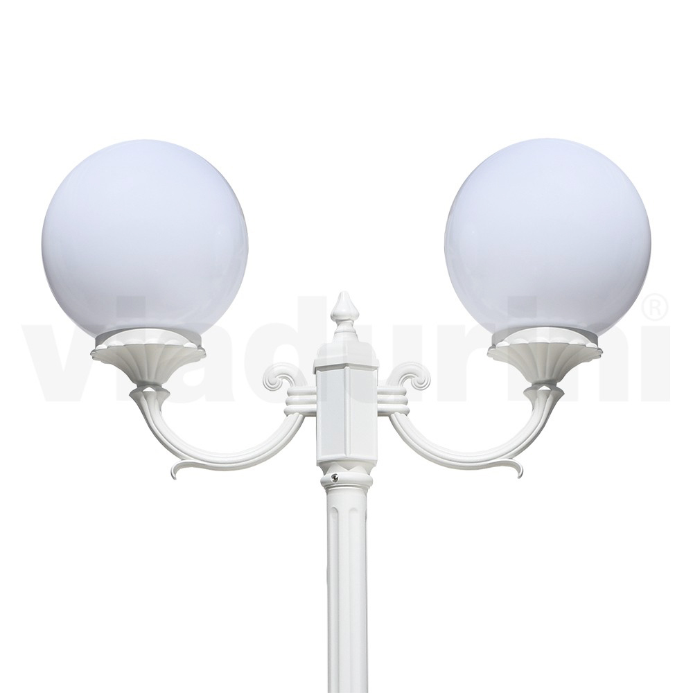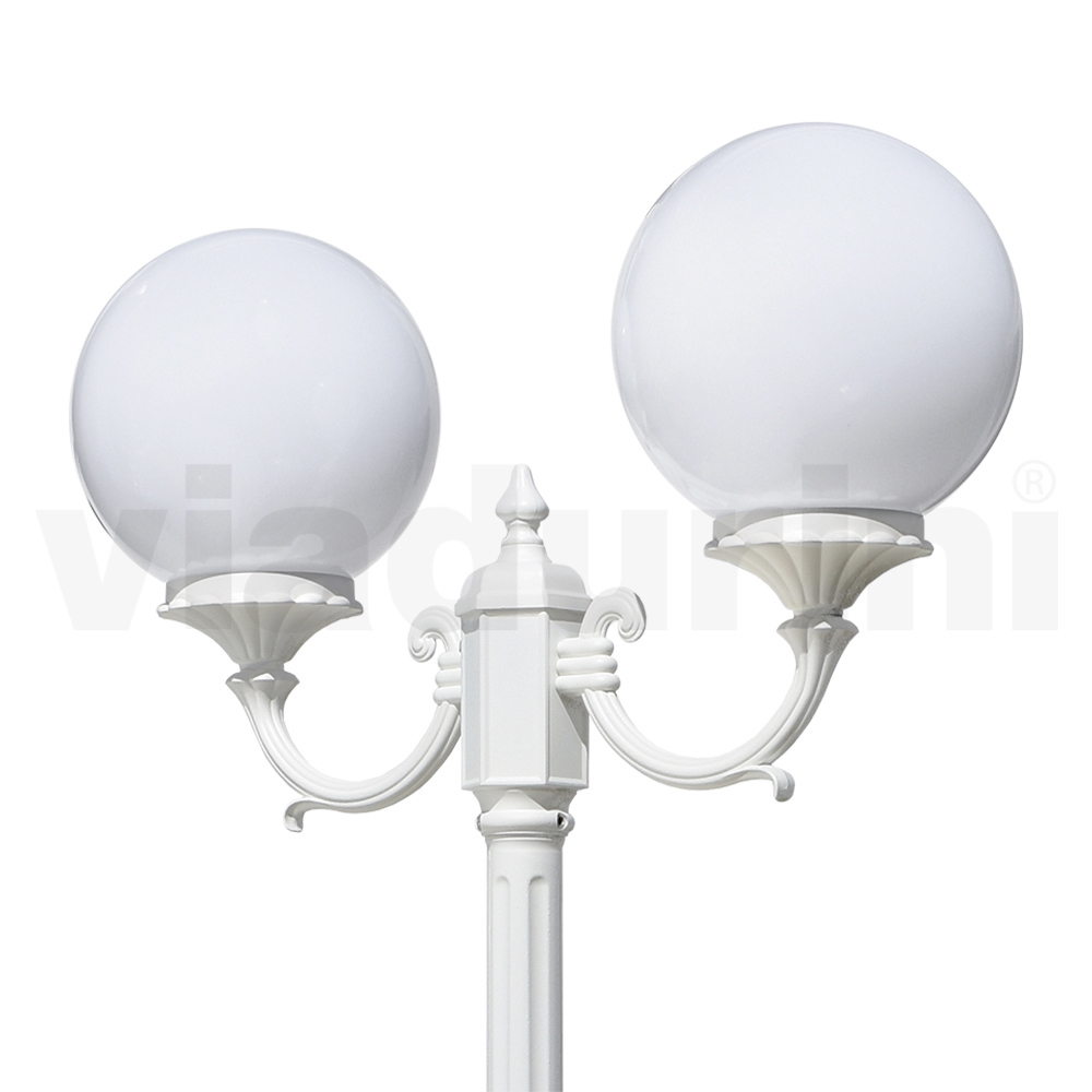 مصباح حديقة مصنوع من هيكل من الألومنيوم المصبوب وموزع كروي من الأكريليك الأوبال ، صنع بالكامل في إيطاليا.