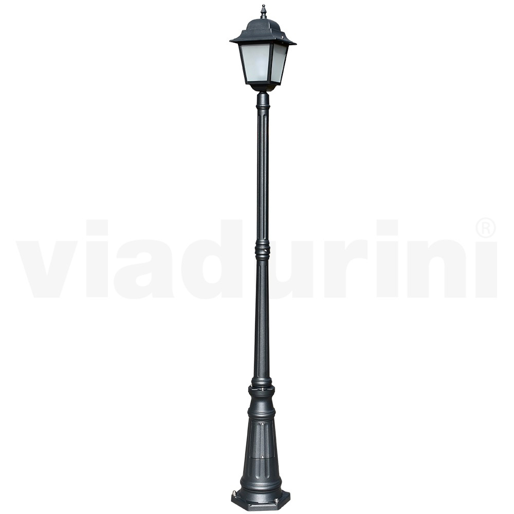مصباح حديقة مصنوع من هيكل من الألومنيوم المصبوب بلمسة نهائية من أنثراسايت وموزع زجاجي مصقول بالرمل ، صنع بالكامل في إيطاليا.