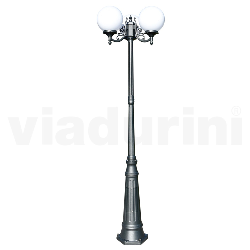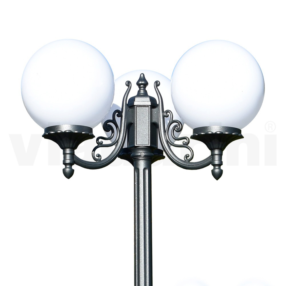 مصباح حديقة مصنوع من هيكل من الألومنيوم المصبوب بلمسة نهائية من أنثراسايت وموزع كروي من الأكريليك الأوبال ، صنع بالكامل في إيطاليا.