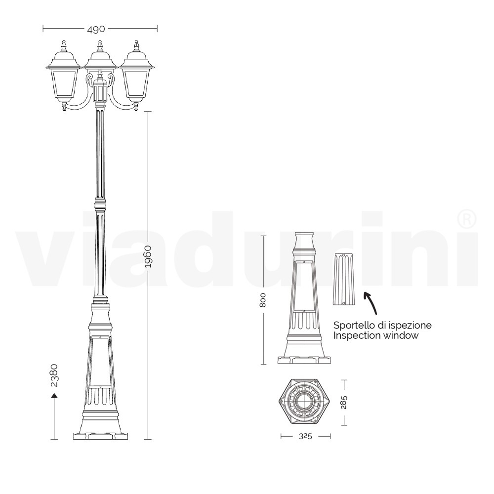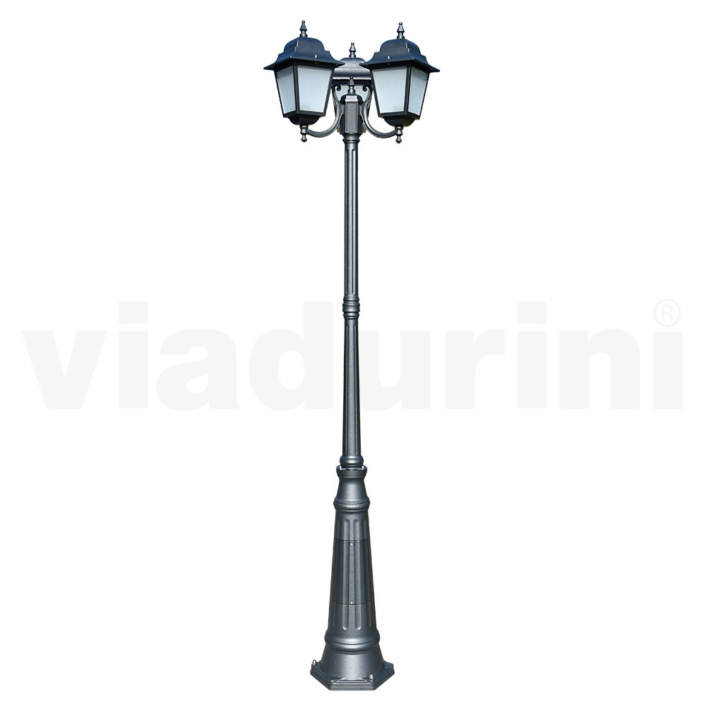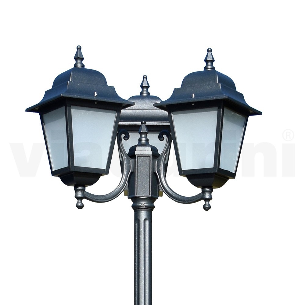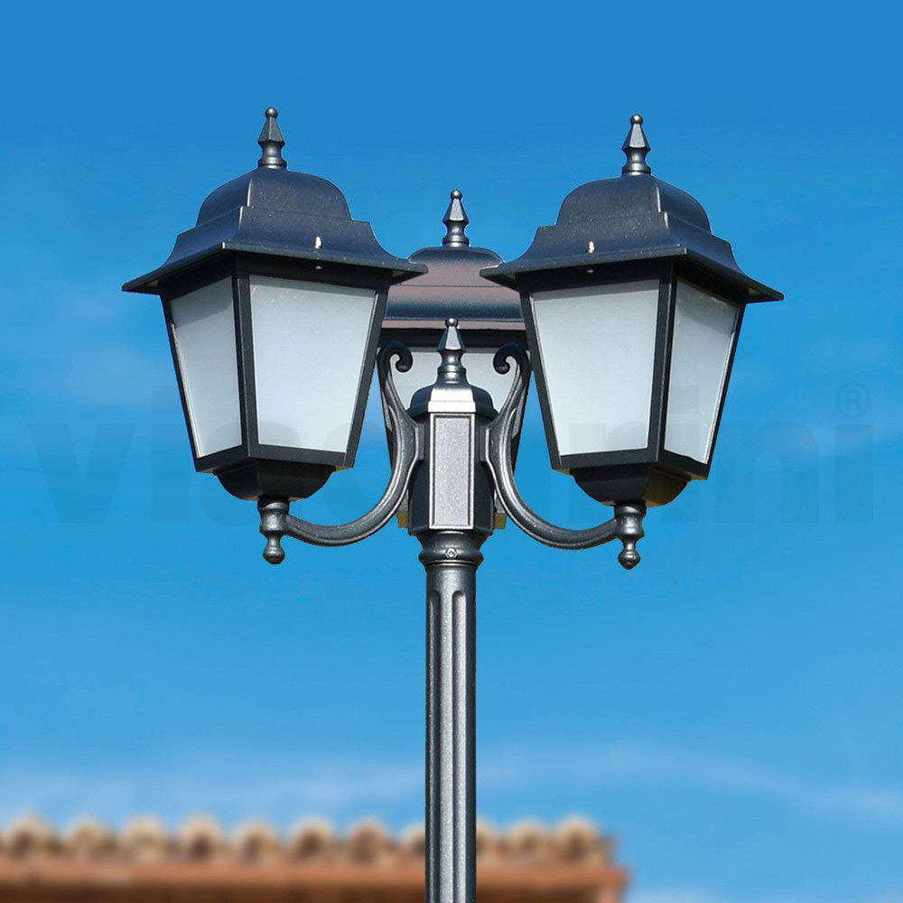 مصباح حديقة مصنوع من هيكل من الألومنيوم المصبوب بلمسة نهائية من أنثراسايت وموزع زجاجي مصقول بالرمل ، صنع بالكامل في إيطاليا.