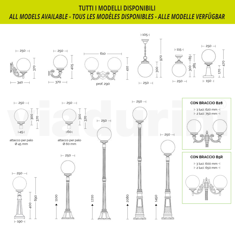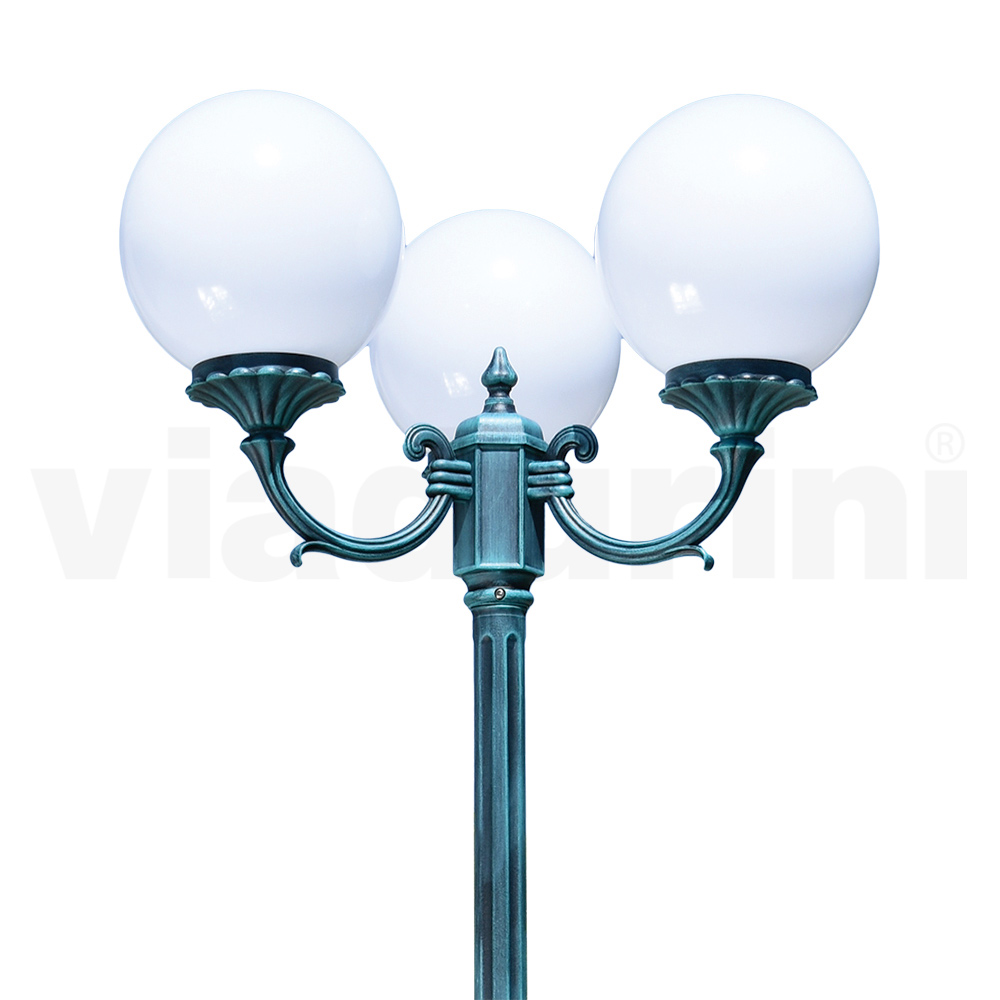 مصباح حديقة مصنوع من هيكل من الألومنيوم المصبوب وموزع كروي من الأكريليك الأوبال ، صنع بالكامل في إيطاليا.