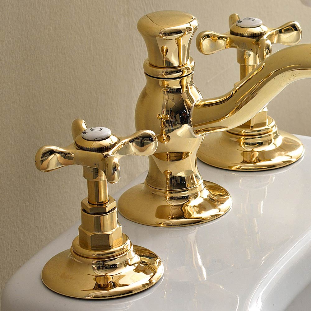صنبور بيديه كلاسيكي بثلاث فتحات مصنوع يدويًا من النحاس في إيطاليا.