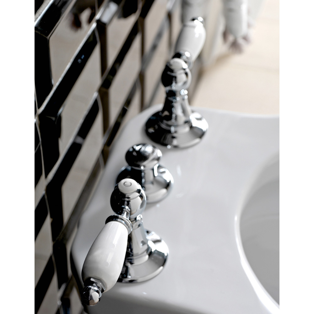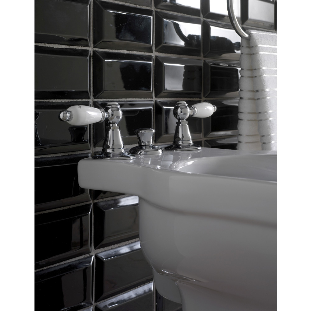 هذا الصنبور المتطور ذو الثلاث فتحات مع صنبور داخلي مصنوع يدويًا بالكامل من قبل حرفيين خبراء في هذا المجال من النحاس الثقيل ، مصبوب في قوالب تحترم أنظمة الحرفية في الماضي ومحمي بطبقة سميكة من التشطيب متوفر بألوان مختلفة. المنتج عبارة عن تصميم فريد وحصري مصنوع في إيطاليا ، مع مواد عالية الجودة، وتفاصيل مخصصة مصنوعة من أجود أنواع السيراميك الإيطالي.
