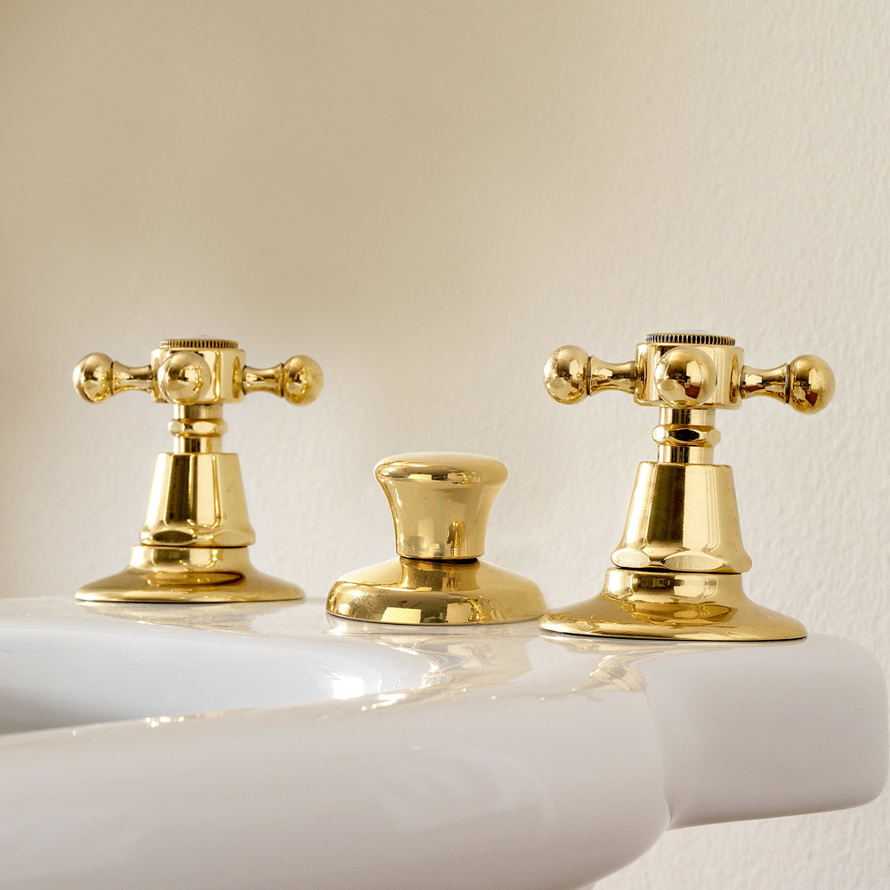صنبور بيديه عتيق بثلاث فتحات مع مخرج داخلي مصنوع في إيطاليا من النحاس، أورسولا.