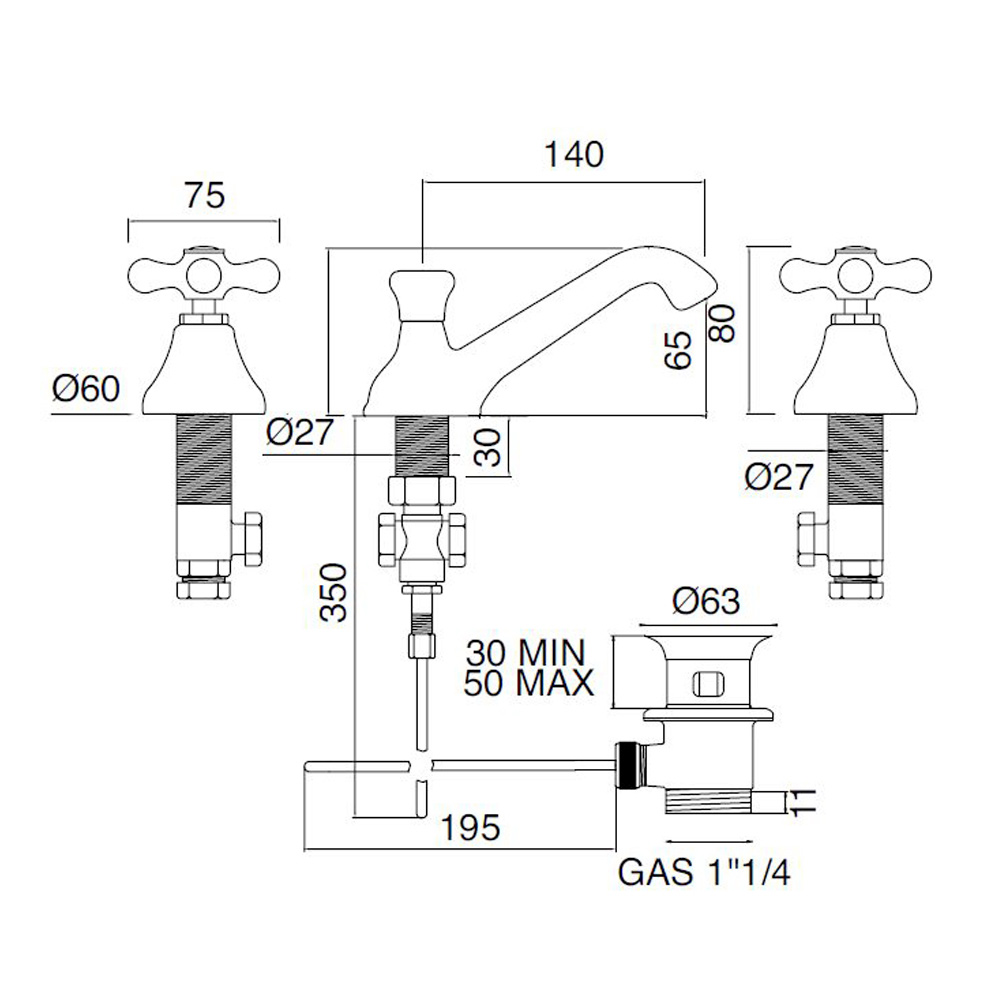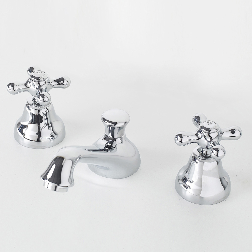 صنبور حوض غسيل بثلاث فتحات مع مصرف نحاسي، مصنوع يدويًا في إيطاليا.