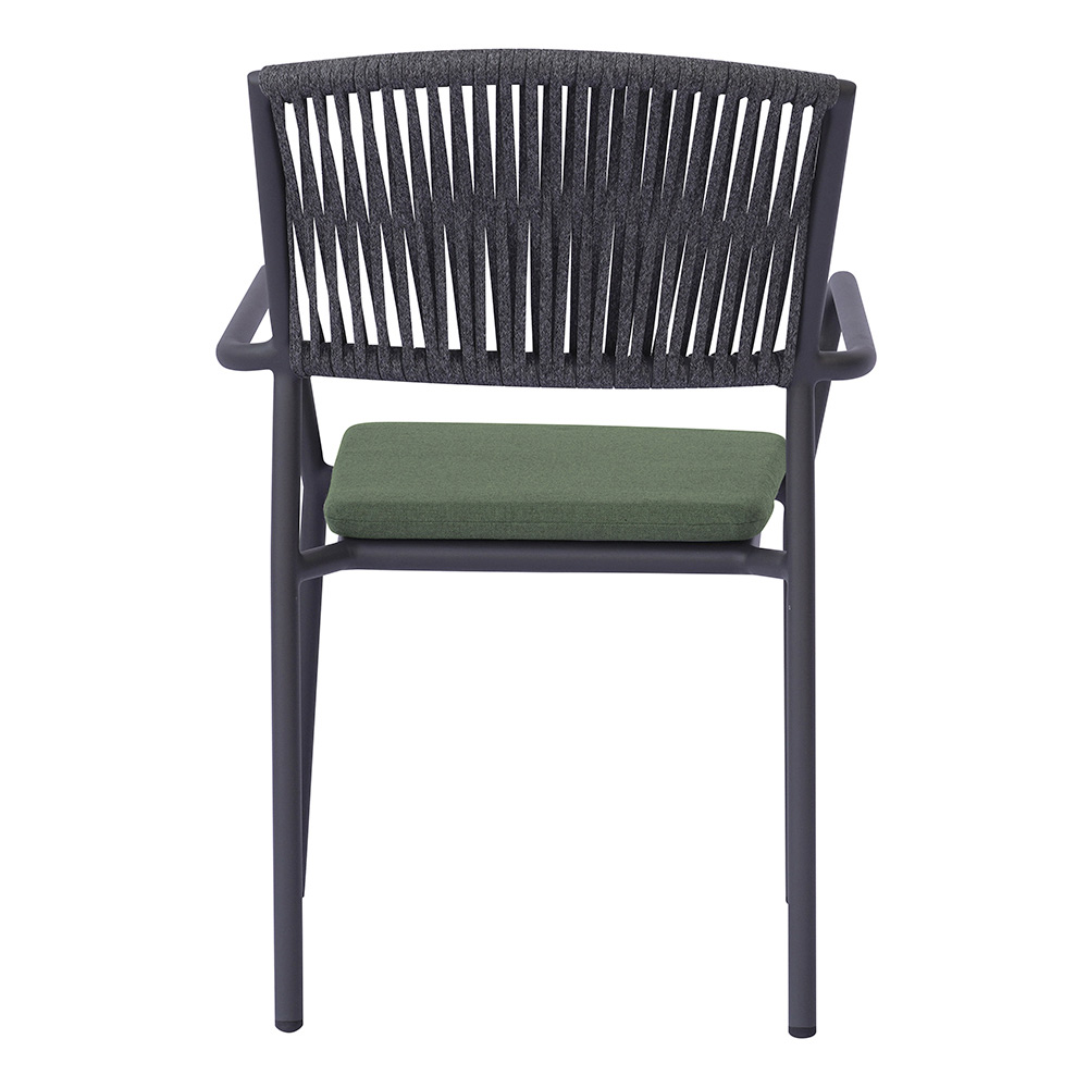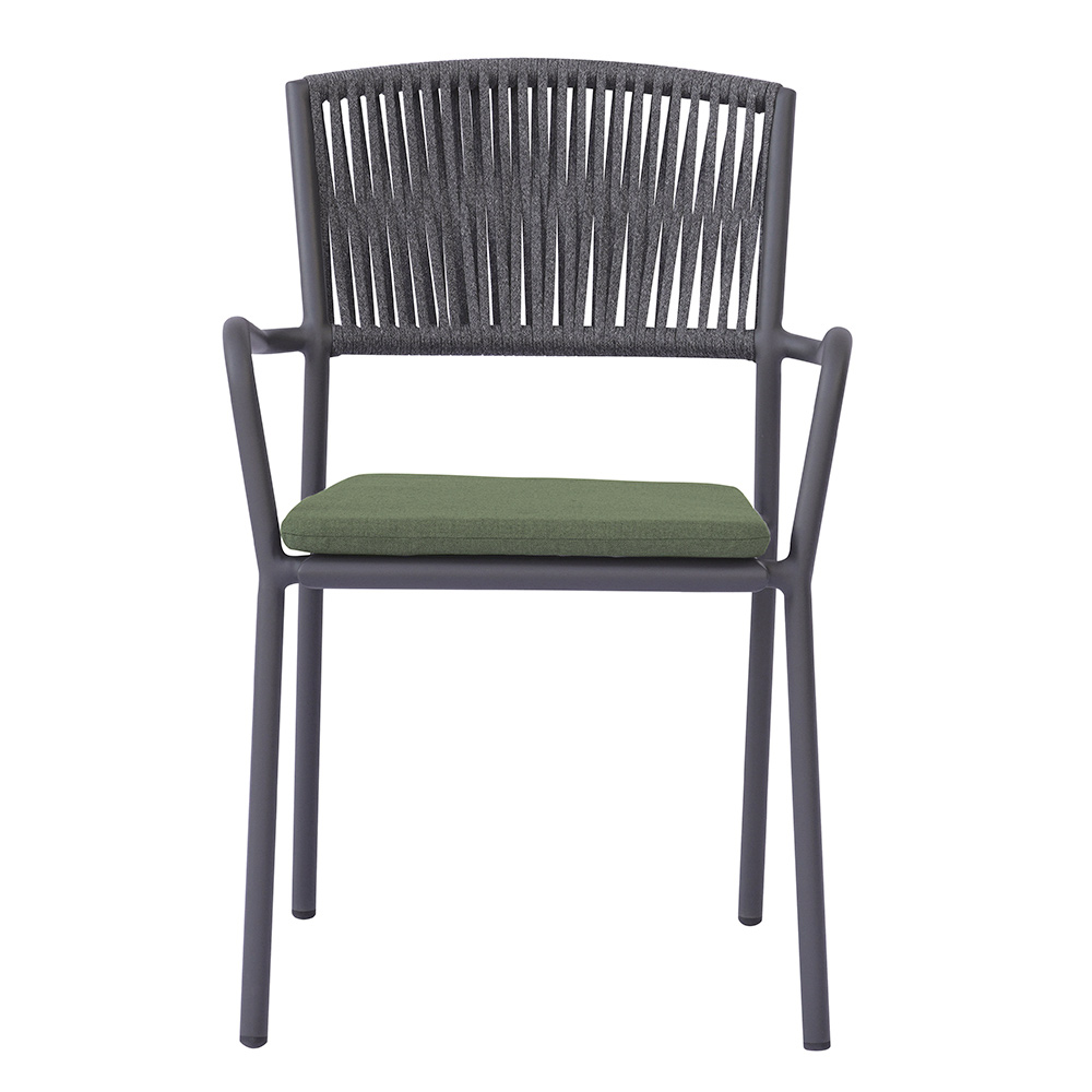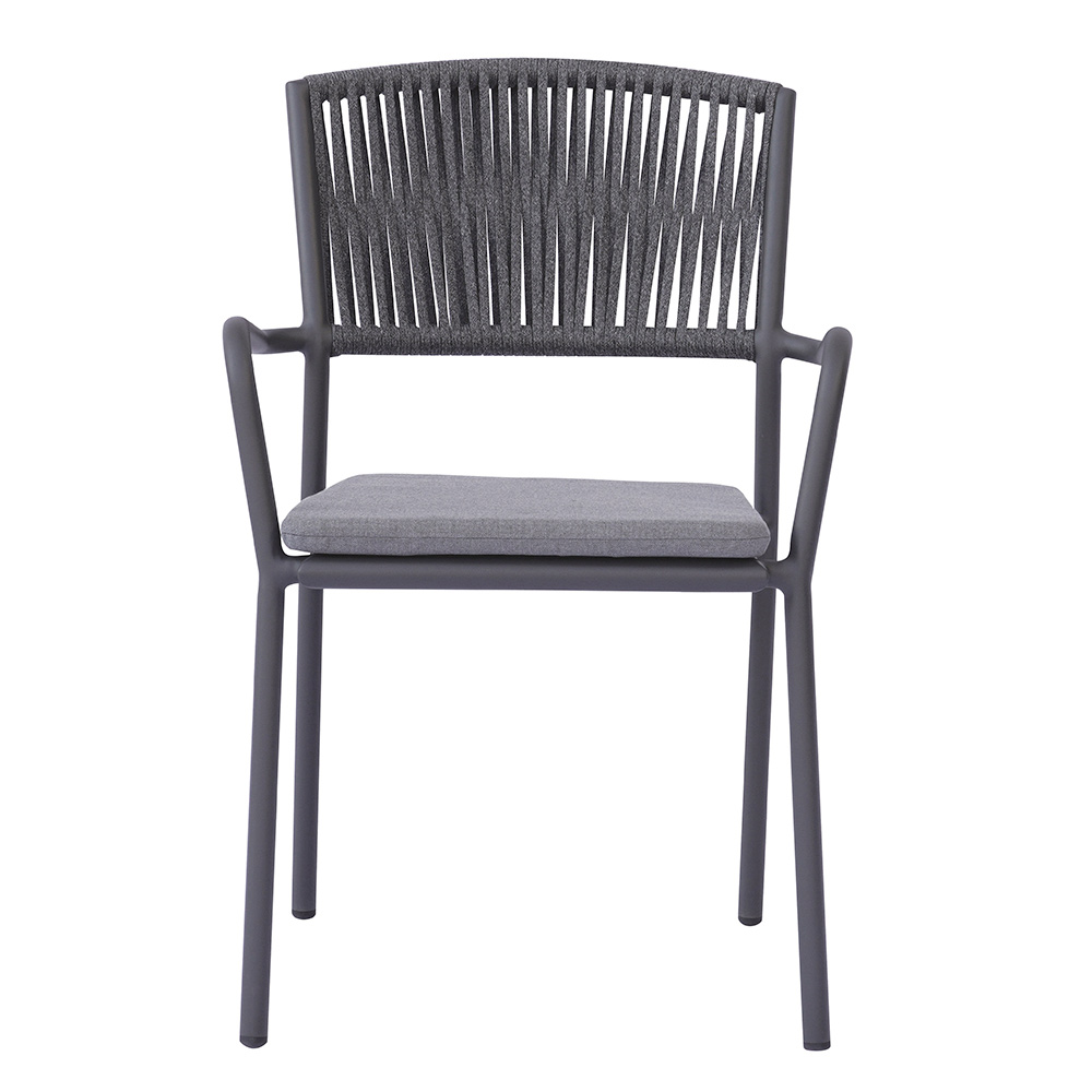 يضيف مسند الحبل الخارجي لمسة راقية ومعاصرة، مما يضمن الراحة والتهوية، بينما يوفر المقعد المصنوع من الألومنيوم مع الوسادة المطابقة النعومة والراحة، مما يجعل كل لحظة من الاسترخاء أكثر متعة.