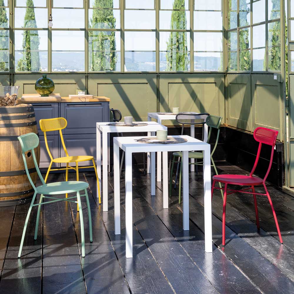 4 كراسي خارجية مصنوعة من هيكل من الحديد المجلفن المطلي بالمسحوق،صُنع بالكامل في إيطاليا.