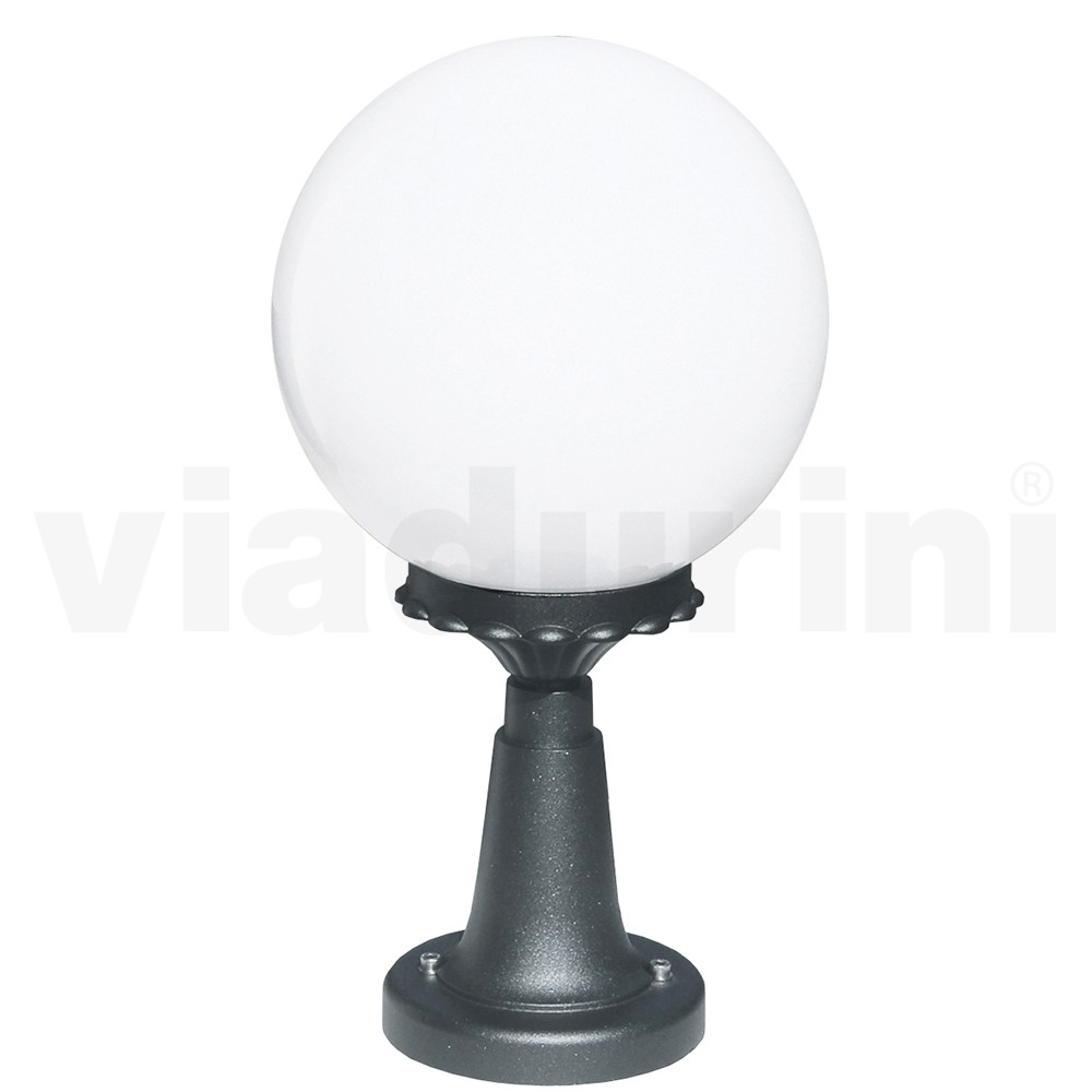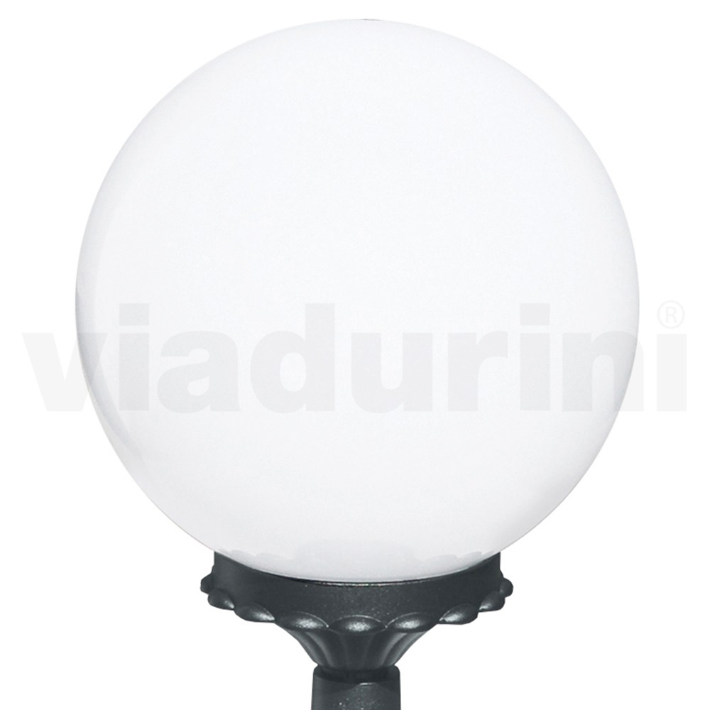مصباح حديقة مصنوع من هيكل من الألومنيوم المصبوب بلمسة نهائية من أنثراسايت وموزع كروي من الأكريليك الأوبال ، صنع بالكامل في إيطاليا.