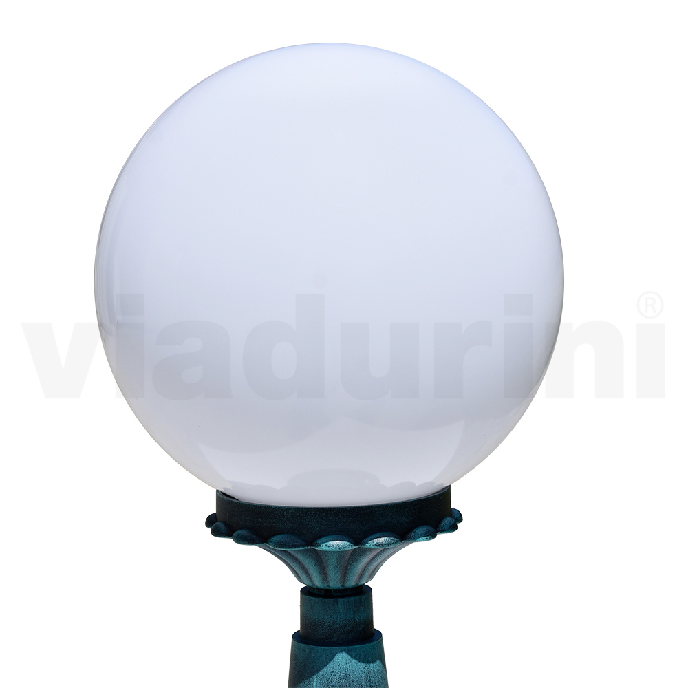مصباح حديقة مصنوع من هيكل من الألومنيوم المصبوب وموزع كروي من الأكريليك الأوبال ، صنع بالكامل في إيطاليا.