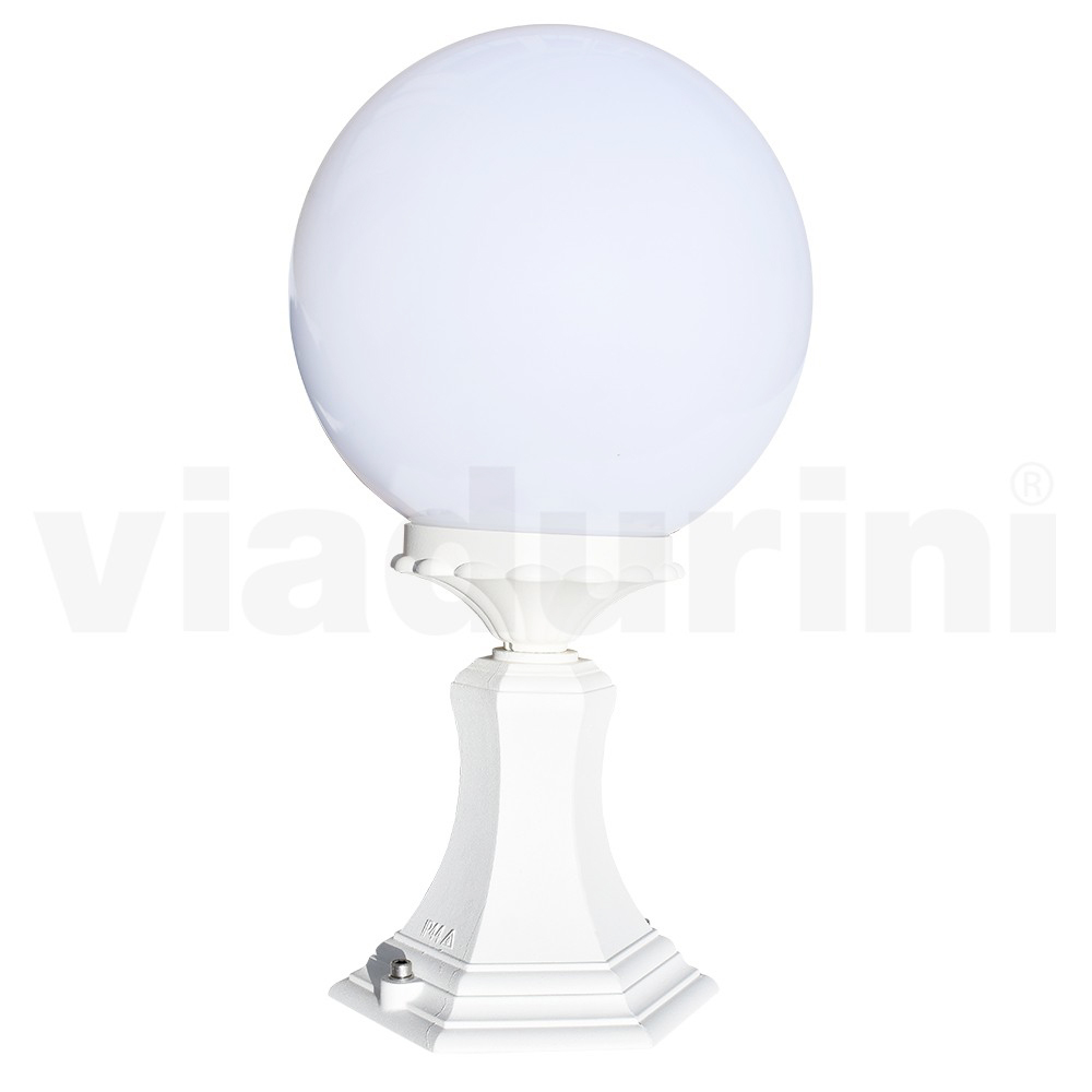 مصباح حديقة مصنوع من هيكل من الألومنيوم المصبوب وموزع كروي من الأكريليك الأوبال ، صنع بالكامل في إيطاليا.