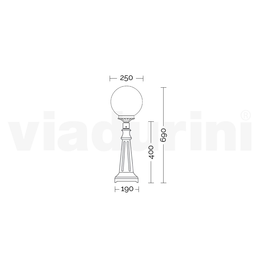 مصباح حديقة مصنوع من هيكل من الألومنيوم المصبوب وموزع كروي من الأكريليك الأوبال ، صنع بالكامل في إيطاليا.