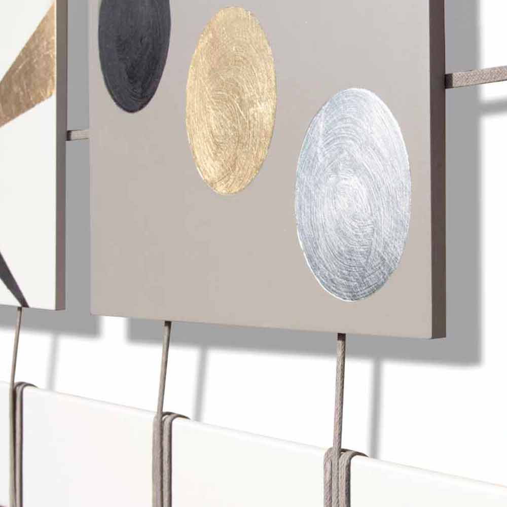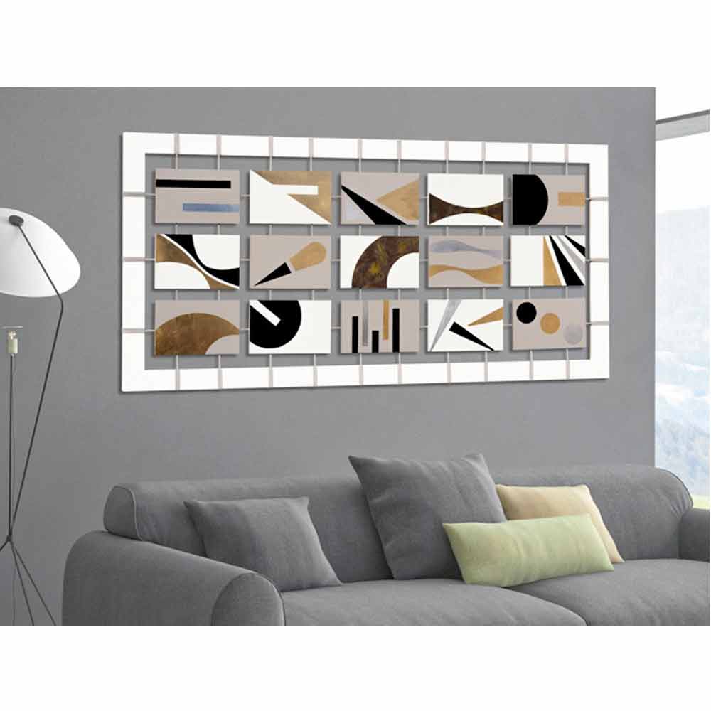 لوحة تجريدية للفنان كريج، مكونة من 15 لوحة، تصميم حديث، صنع في إيطاليا لوحة جدارية بتصميم عصري، بإطار خشبي أبيض وخمس عشرة لوحة من خشب MDF. الألواح المعلقة مطلية باللونين العاجي والرمادي، ومزينة بأوراق ذهبية وفضية ورصاصية. ستكون هذه القطعة الفنية الجميلة هي اللوحة المثالية لتزيين منزلك أو مكتبك أو متجرك بأناقة. صنع في إيطاليا.