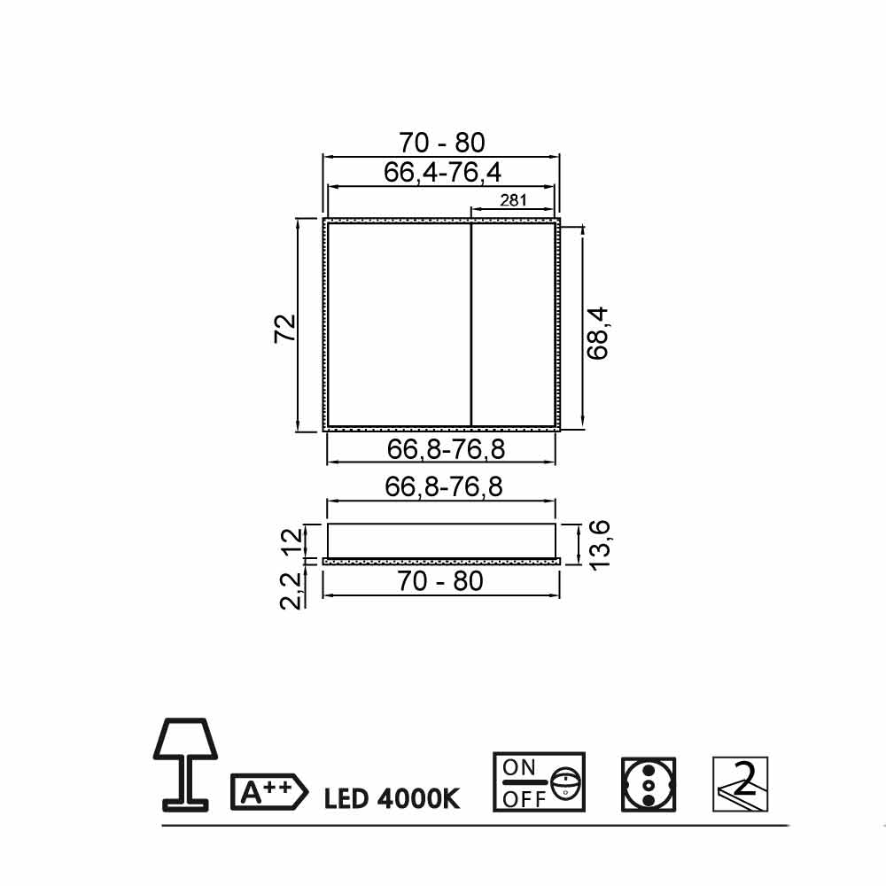 خزانة مرآة أديل مع بابين وإضاءة LED، تصميم عصري. خزانة مرآة الحمام مع بابين. يتكون إطار الخزانة من مادة Fenix، وهي مادة بوليمرية تمت معالجتها باستخدام تقنيات النانو، مما يجعل السطح مقاومًا للماء والبقع وله تأثير ناعم الملمس. مزود بمفتاح وقابس. يتوفر Adele بالتشطيبات التالية: - فينيكس الأبيض - فينيكس بني بيفر - فينيكس رمادي مدخن افتح القائمة المنسدلة الموجودة بجوار صور المنتج وحدد اللمسة النهائية المختارة. ضوء LED: 4000k (مرفق) الطاقة: 43 واط لومن: 3780 لومن