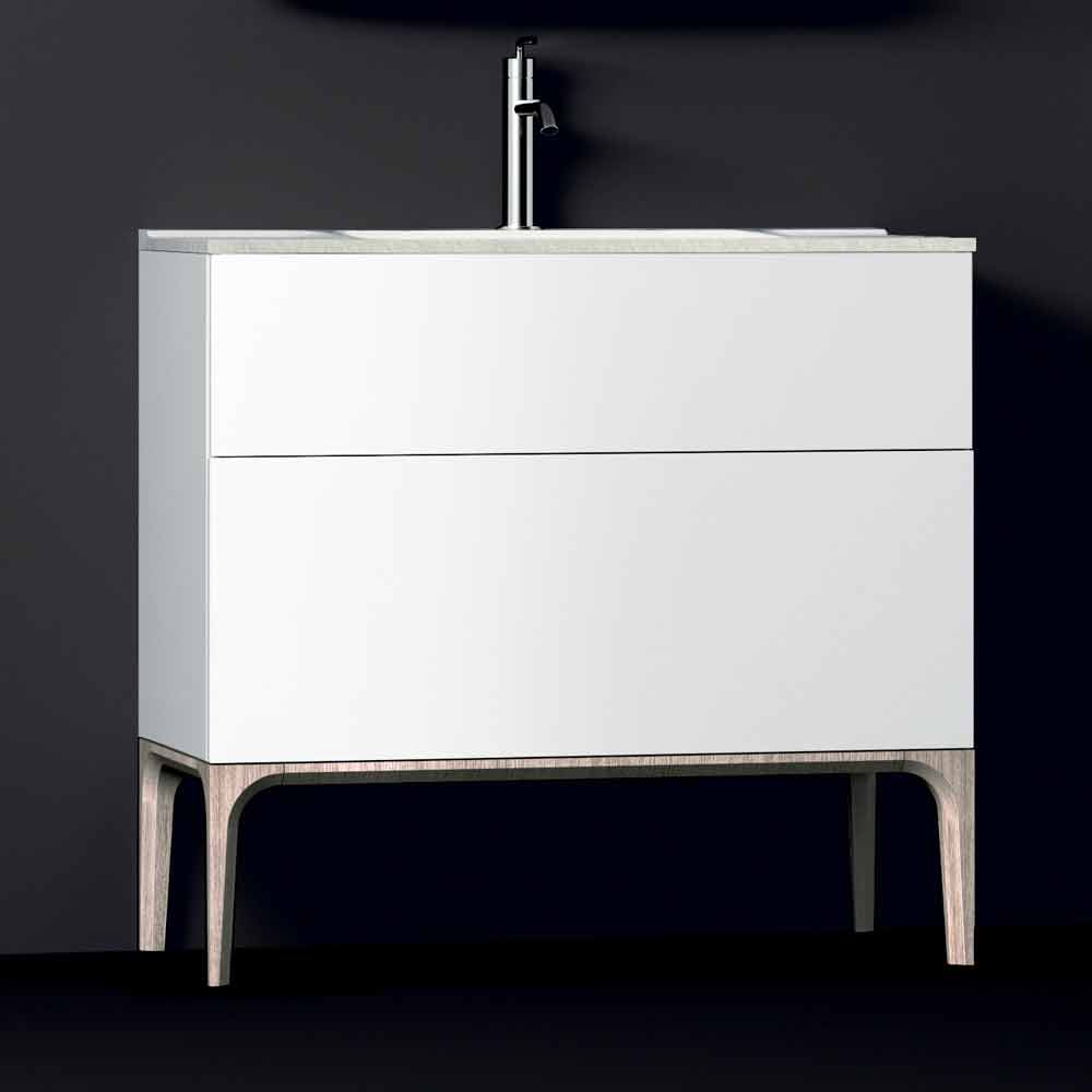 مجموعة حمام أمبرا مع حوض مدمج، مصنوعة من الراتنج والخشب المصقول. طاولة زينة أنيقة بدرجين من الخشب المطلي، وأرجل من خشب البلوط الصلب. سطح من الراتنج، متوفر بتشطيبات مختلفة. يعبر هذا الحوض المخصص للحمام عن الأناقة والحداثة والتقاليد في نفس الوقت، وذلك بفضل أقدامه الخشبية الصلبة وأسطحه متعددة الأوجه.