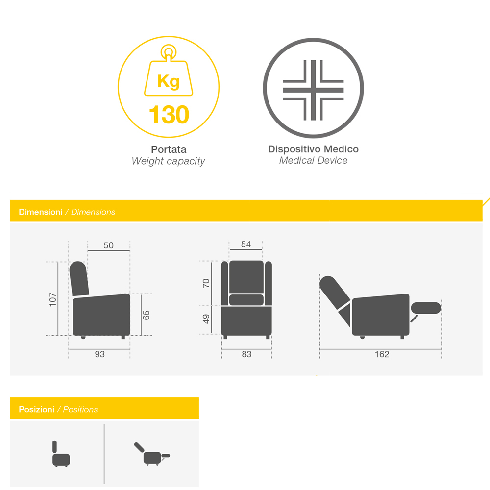 كرسي بذراعين مع حركة تصل إلى الوضع المريح لمسند الظهر ولوح القدم.