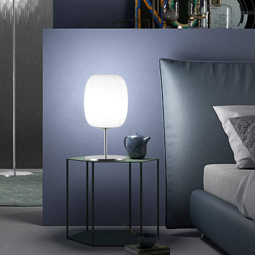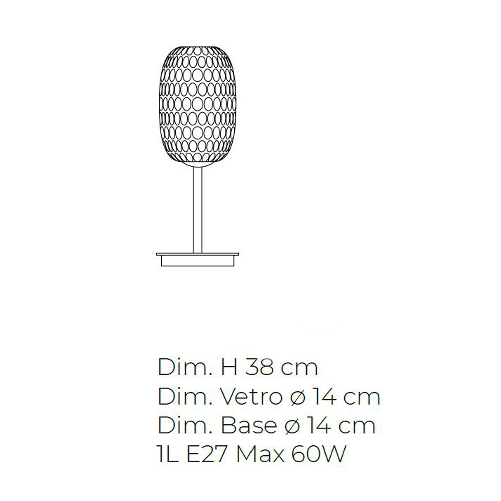 مصباح طاولة مصنوع يدويًا من الزجاج المنفوخ في أفران المناطق الداخلية لمدينة البندقية، في إيطاليا، من خلال استخدام التقنيات القديمة النموذجية لمعالجة زجاج مورانو والتي تناقلتها أساتذة الزجاج عبر الزمن.