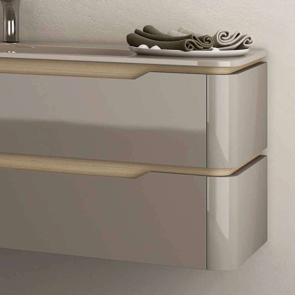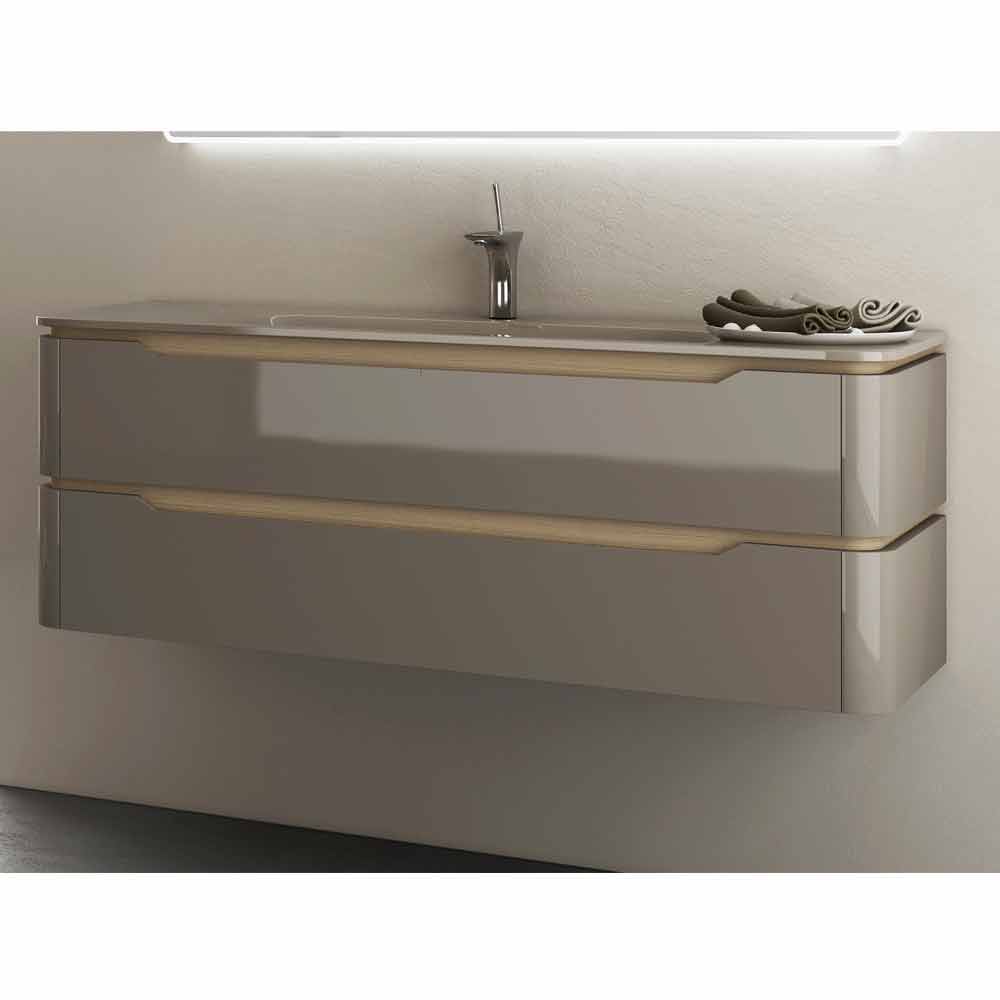 طاولة حمام آريا مع حوض مدمج، صنع في إيطاليا. حوض حمام فاخر بدرجين منحنيين. هذا الحوض بتصميم عصري مصنوع من الخشب المطلي، مع لمسات من الخشب الطبيعي. مع سطح كريستالي شفاف للغاية وحوض مدمج. تتوفر تشطيبات متنوعة. تتميز مجموعة آريا بخطوط أفقية وجوانب مستديرة، وتصاميم أحادية حصرية ذات جماليات قوية. يتجلى هذا المفهوم في جميع منتجات هذه المجموعة. تبرز جمالياتها الرسومية بفضل شكل مقابض الغرور والجمع بين اللمسة النهائية المزدوجة.