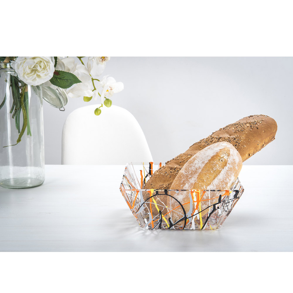 سلة خبز مصممةصُنع في إيطاليا من زجاج شبكي شفاف ١٠٠٪ من بوليمر خام. مثالي لتقديم المشروبات والمأكولات. يتميز بمتانته وأناقته ورقيّه، وتصميمه الهندسي الأصيل، ومناسب لجميع المناسبات، بفضل لمعانهوتألقه اللذين لا يتغيران بمرور الوقت.