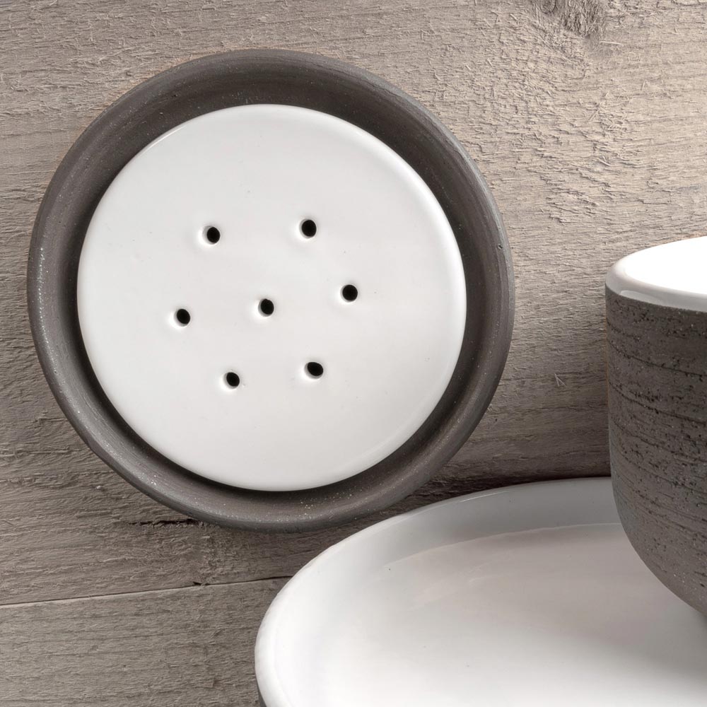 إكسسوارات الحمام المصنوعة من الطين مع بطانة داخلية مطلية بالمينا الأبيض صنع في إيطاليا.