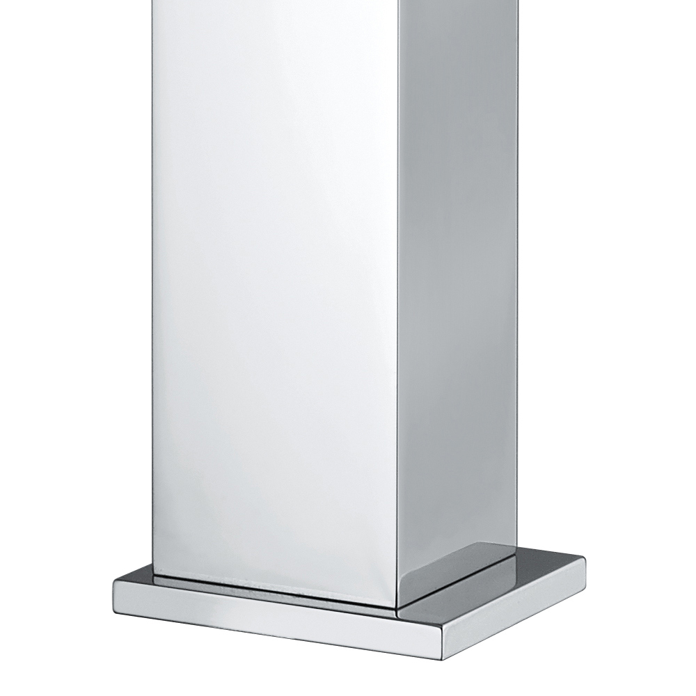 خلاط حوض حمام مزود بفوهة تصريف منبثقة، مصنوع من النحاس المطلي بالكروم، بفوهة قطرها 170 مم، وخرطوشة كيروكس مفتوحة قطرها 25 مم. خطوطه المربعة وزواياه الحادة تضفي لمسة عصريةوراقية على المنتج والغرفة بأكملها، مما يُثريها بأناقة ونكهة جديدة كليًا. بساطته ولمسته النهائية الرائعة من الكروم تجعله يندمج بسلاسة مع أي ديكور، ليبدو أنيقًا وبسيطًا.