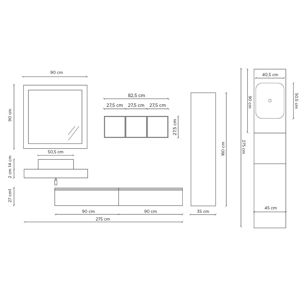 المرآة: الطول 90 سم × العمق 2 سم × الارتفاع 90 سم