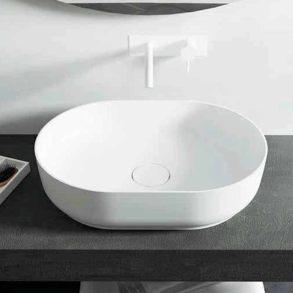 حوض غسيل بتصميم مستقل مصنوع في إيطاليا Frascati متوسط الحجم فراسكاتي حوض غسيل قائم بذاته بيضاوي الشكل. تصميمه الدائري يجعله مثاليًا لتزيين حمامك بلمسة طبيعية وخفيفة من الأناقة.