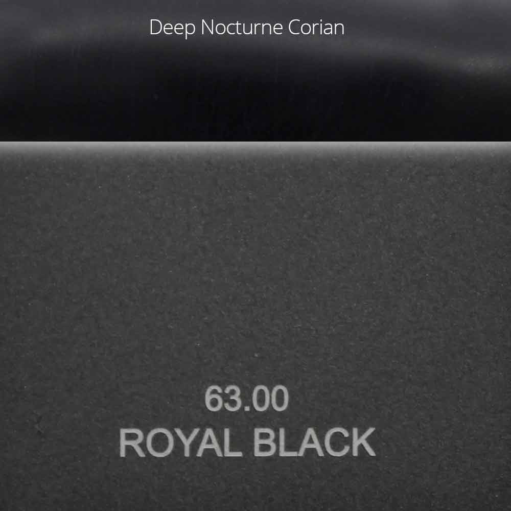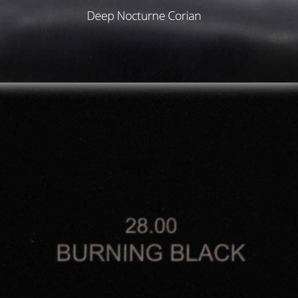 اللون الأسود المحترق + اللون الليلي العميق Corian®: لمسة نهائية باللون الأسود غير اللامع مع عناصر DuPont ™ Corian® باللون الأسود؛