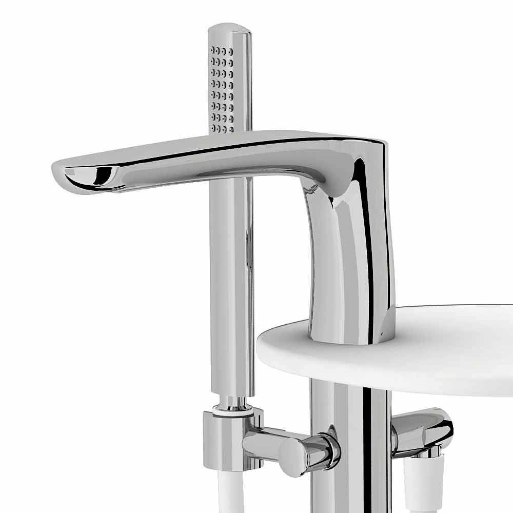 خلاط حمام مثبت على السطح مع محول ودش يدوي مزدوج ورف من DuPont ™ Corian® صنع في إيطاليا.