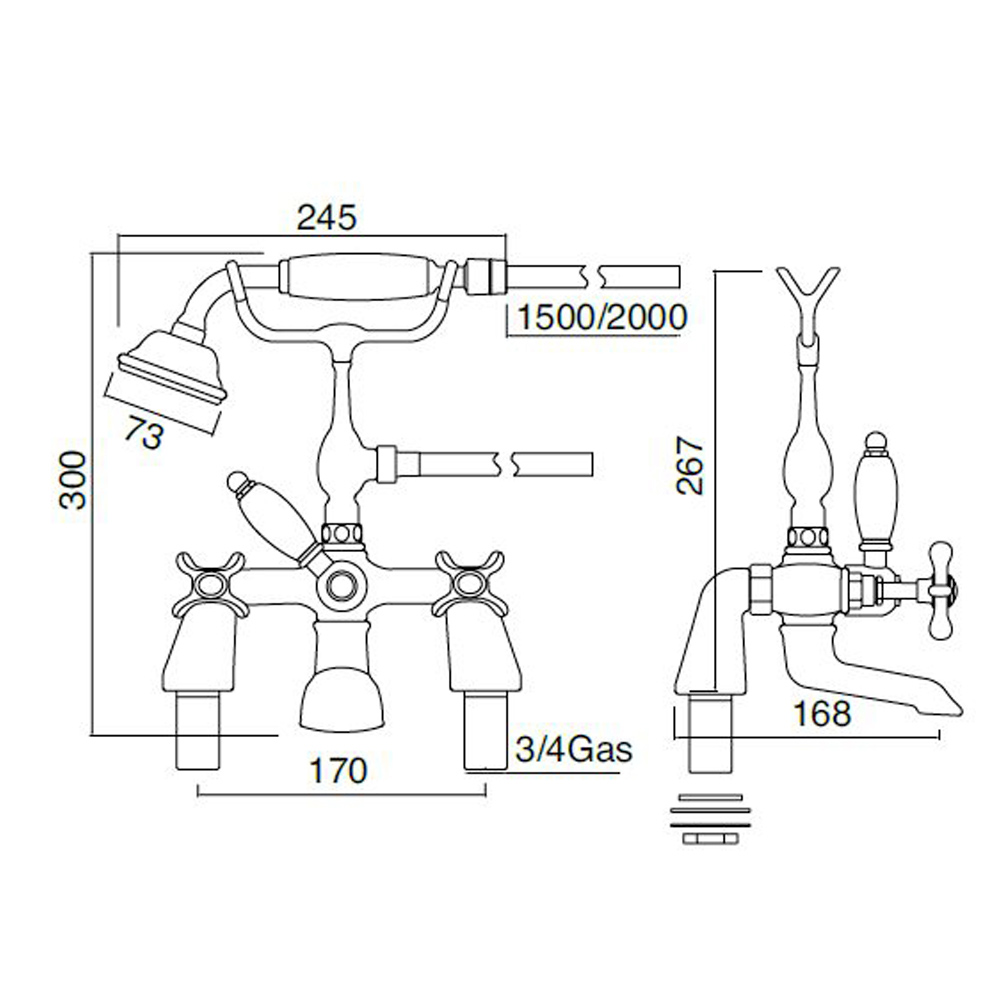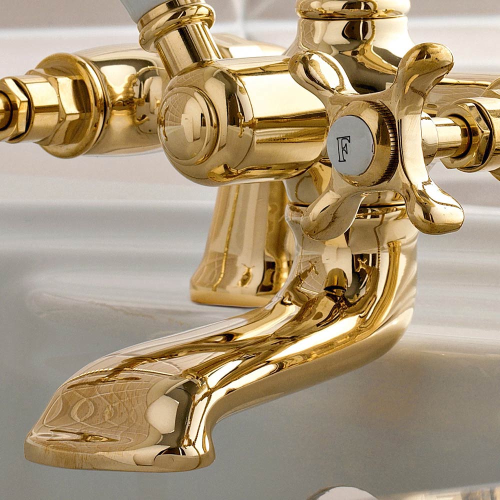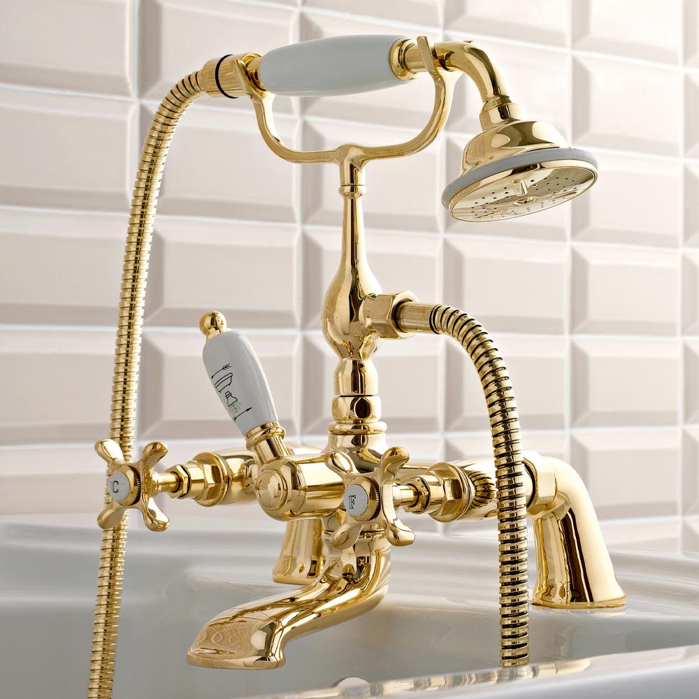 صنبور حوض استحمام كلاسيكي مصنوع من النحاس مع دش يدوي، عالي الجودة صنع في إيطاليا.