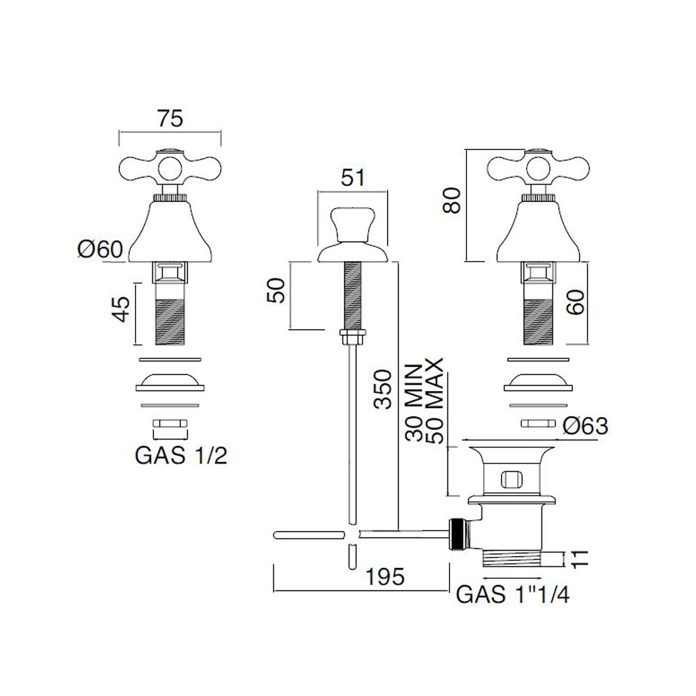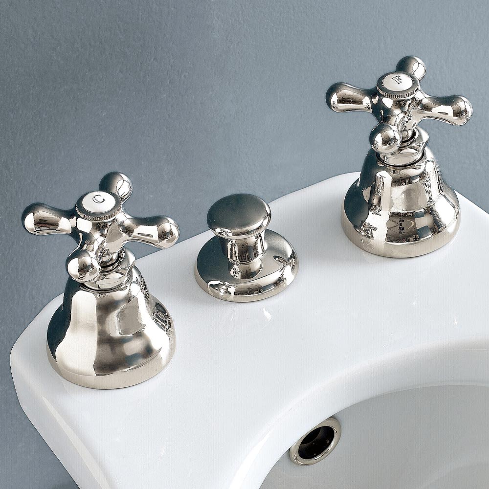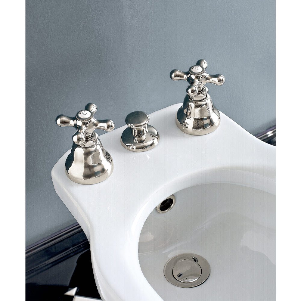 صنبور بيديه كلاسيكي بثلاث فتحات مع تصريف وإمداد داخلي عالي الجودة مصنوع في إيطاليا.