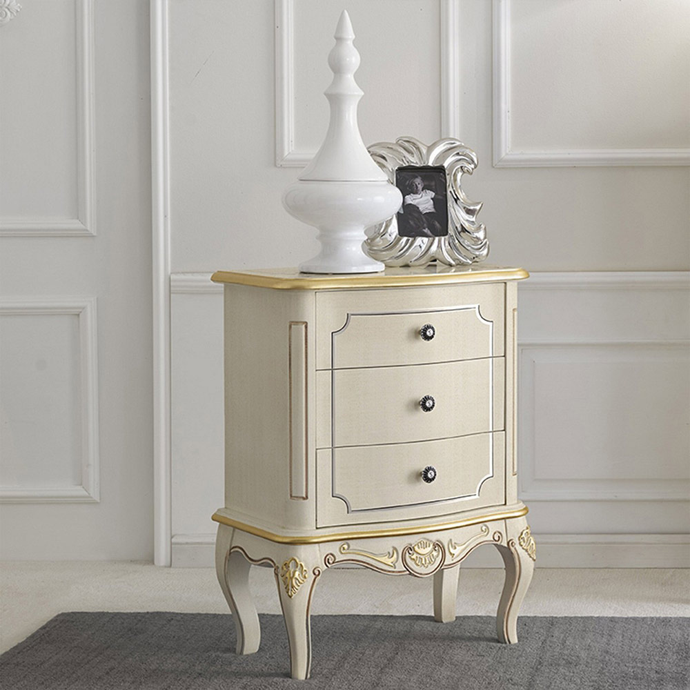 طاولة بجانب السرير لغرفة النوم مصنوعة من الخشب مع 3 أدراج صنع في إيطاليا.