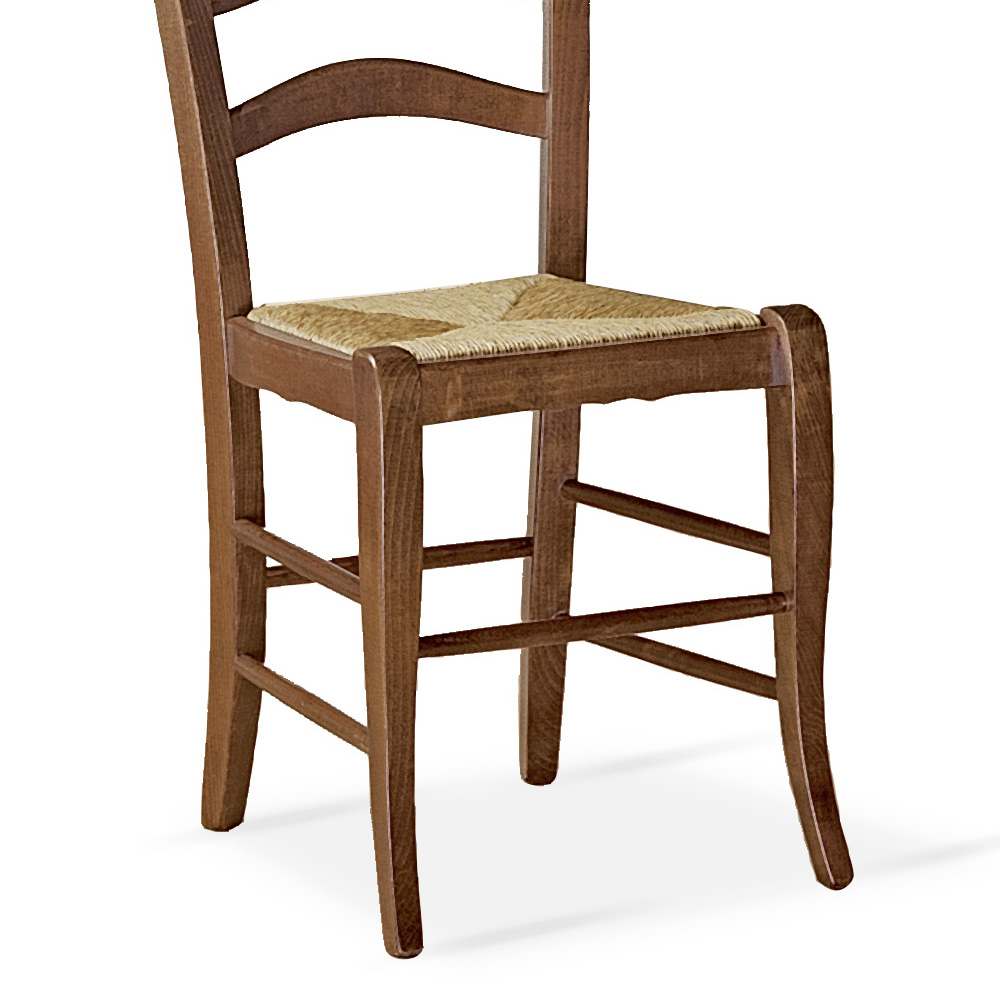 كرسي حديث للاستخدام الداخلي مع هيكل من خشب الزان المصبوغ باللون الجوزي و جالس مصنوعة من القش.