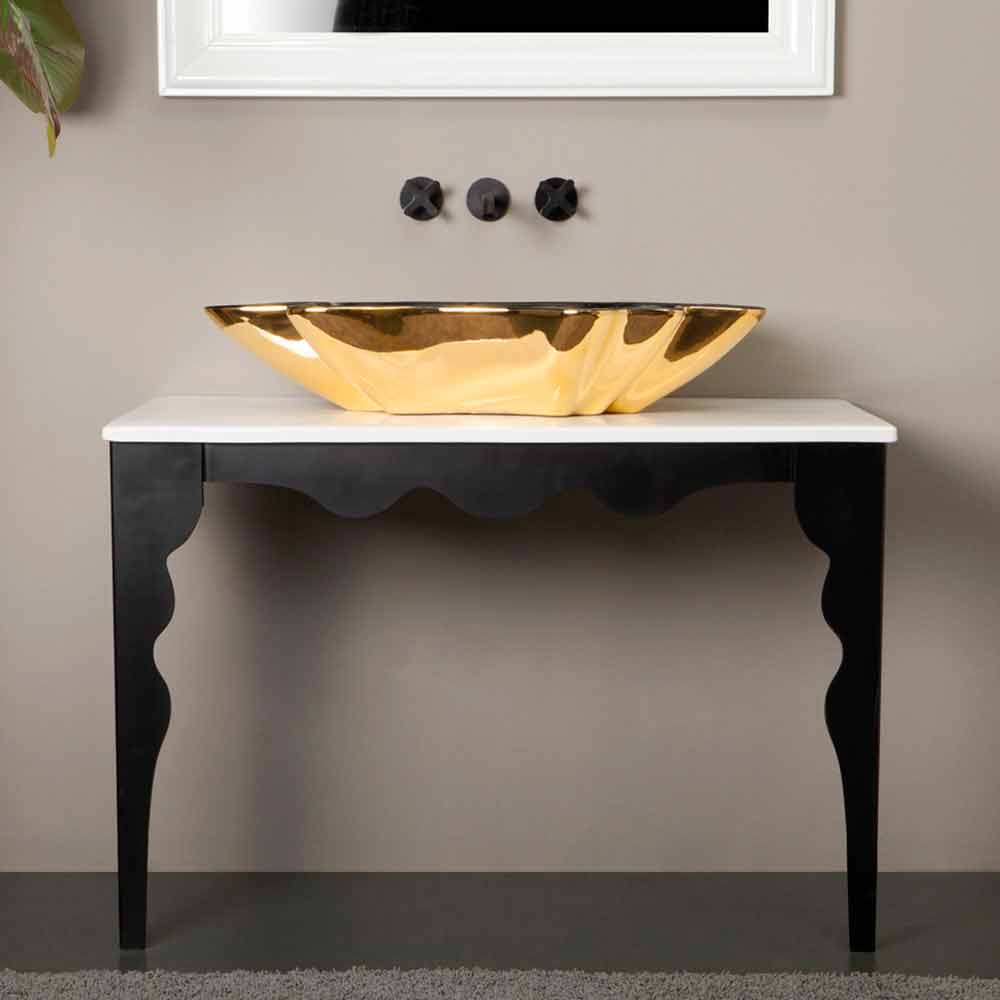 حوض ريان المصنوع من السيراميك باللونين الأسود والذهبي، بتصميم إيطالي